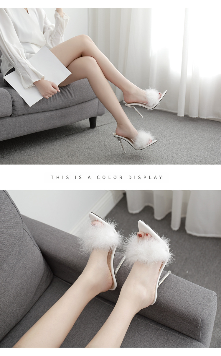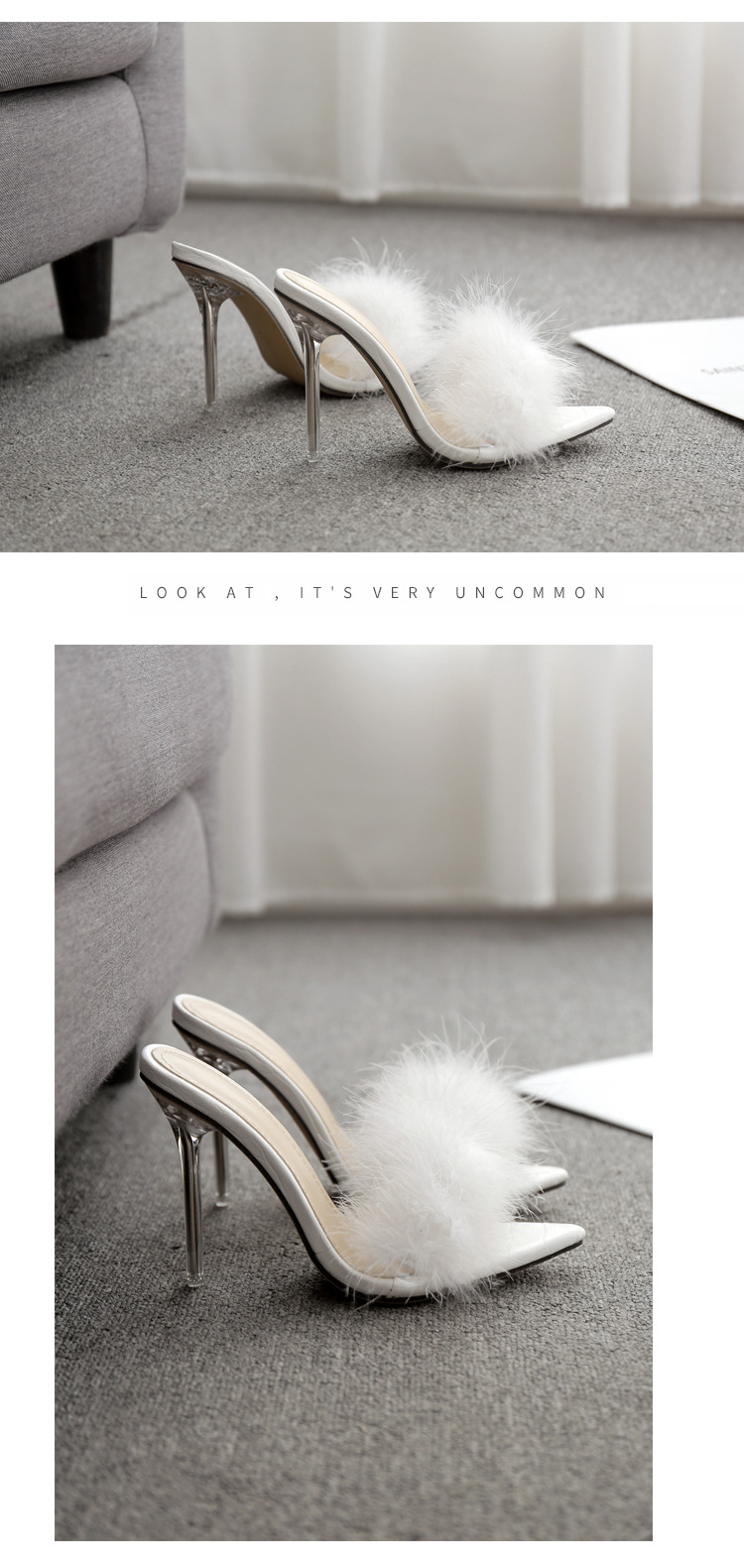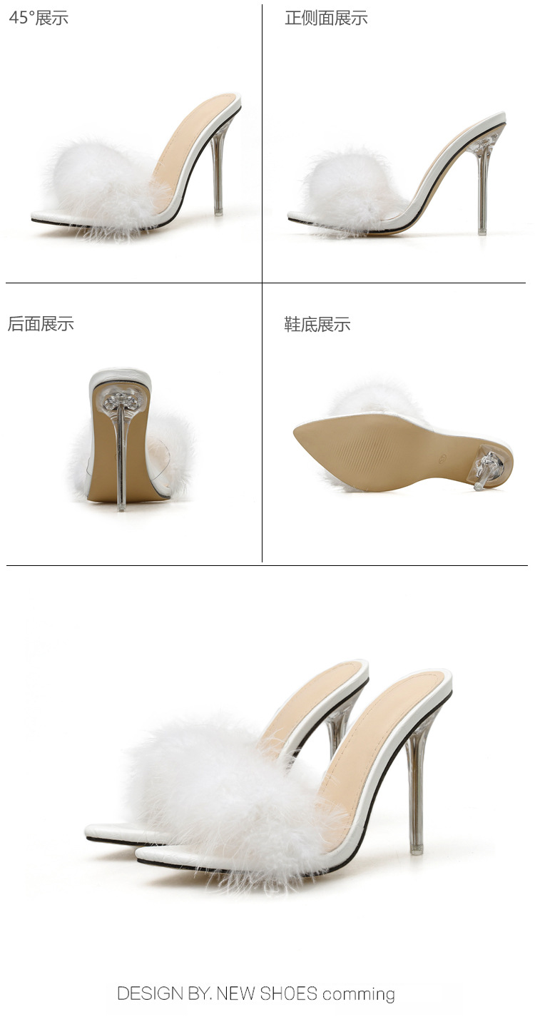 • 2020 AliExpress foreign trade new women's shoes European and American sexy Mao Mao shoes Net red pointed high heel transparent slippers