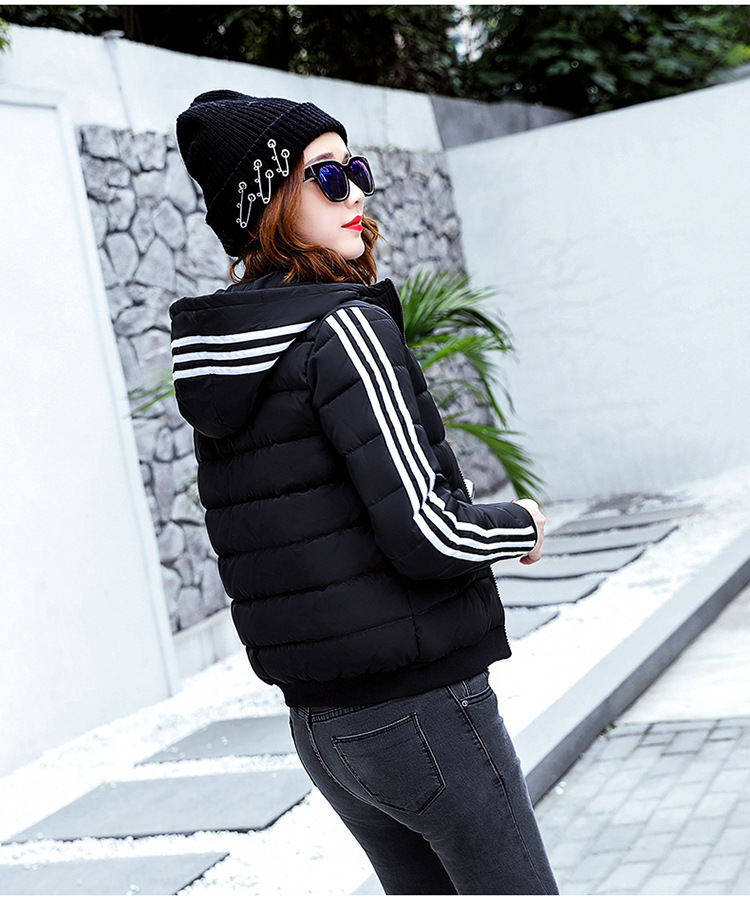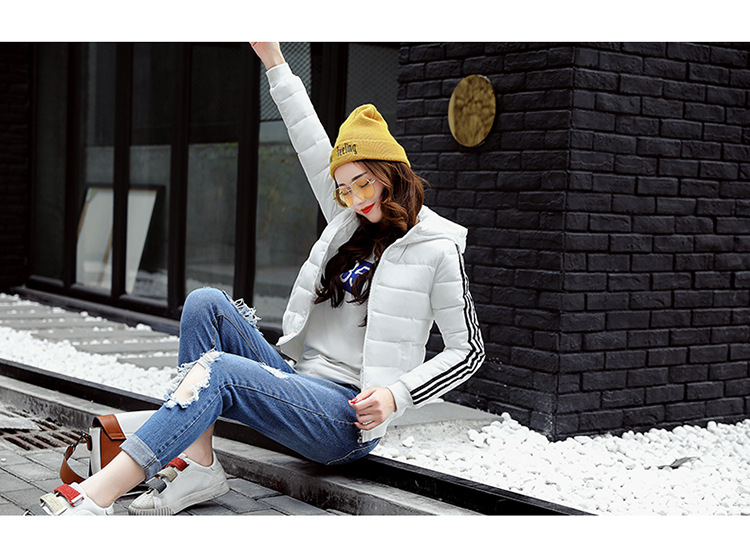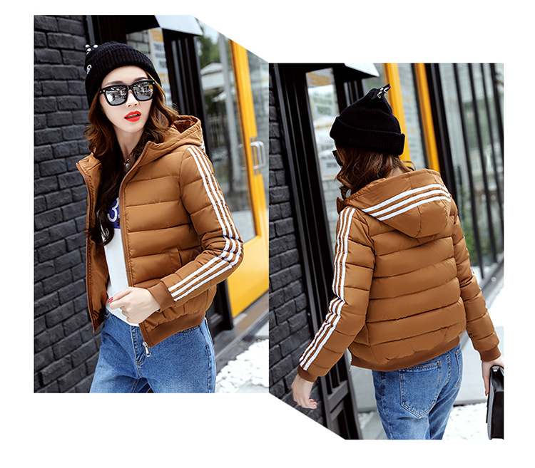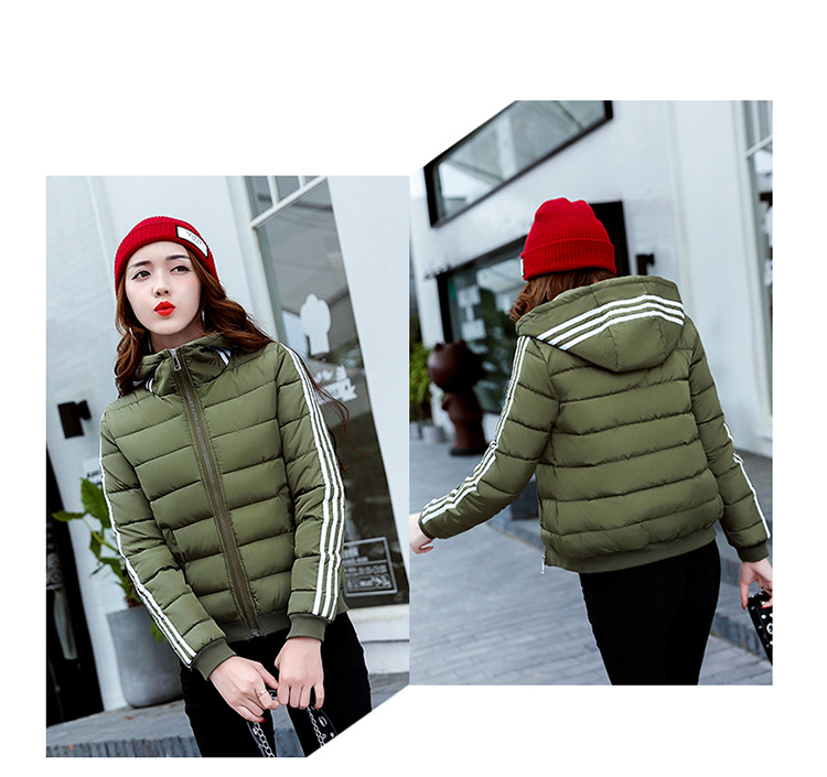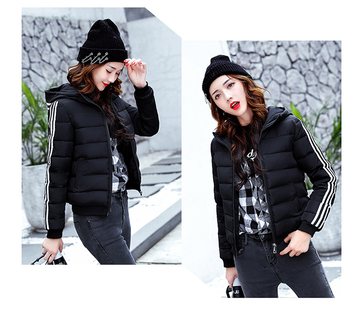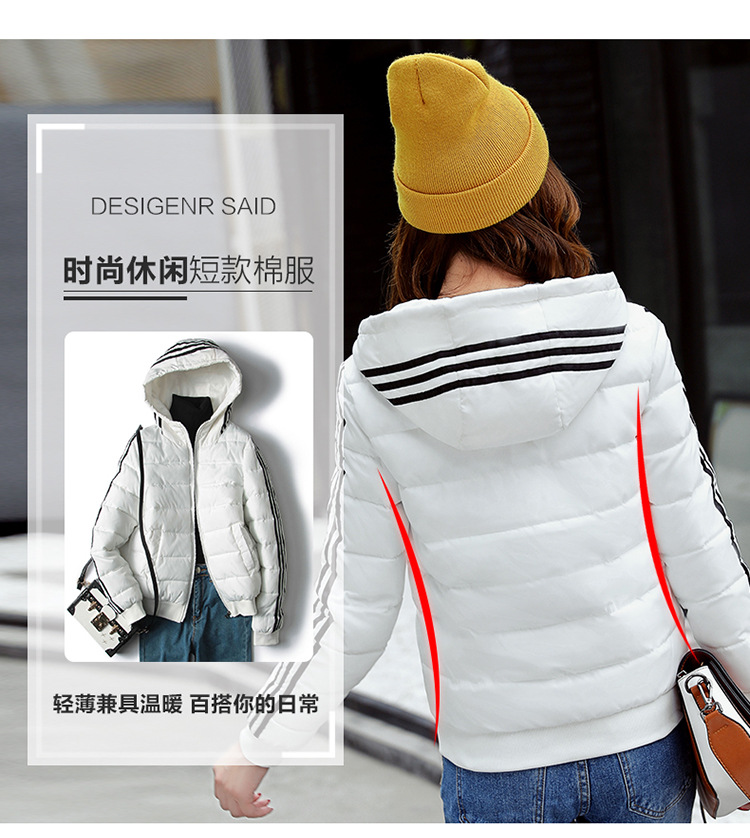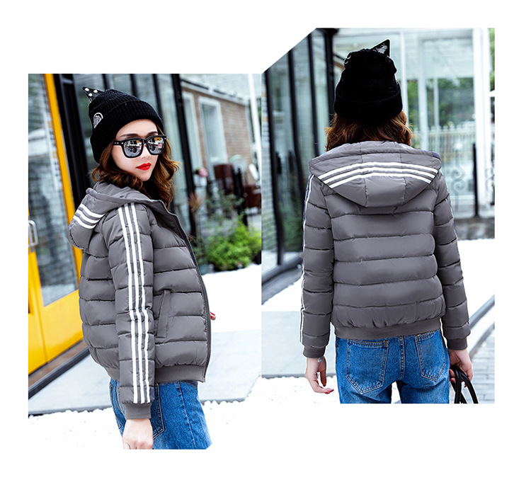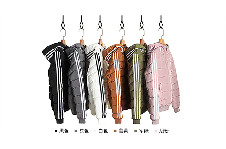 European and American Clothing Cotton-Padded Clothes, Autumn and Winter Three-Stripe Down-Padded Clothes, Women's Short Korean Style Student Group Clothes, Sports Cotton-Padded Jackets