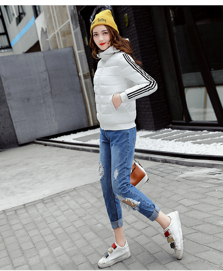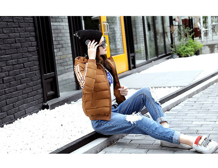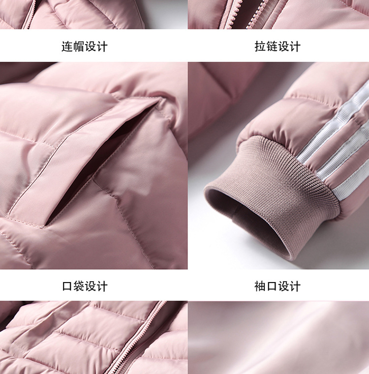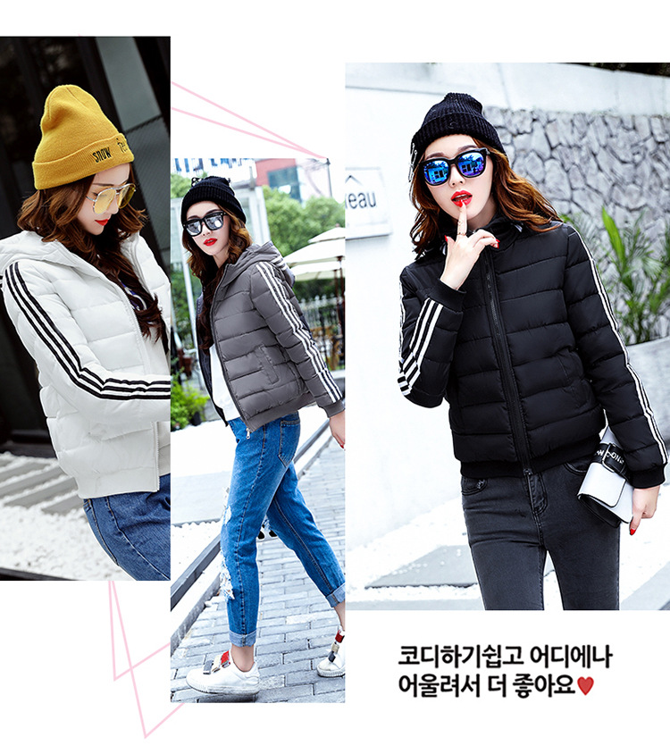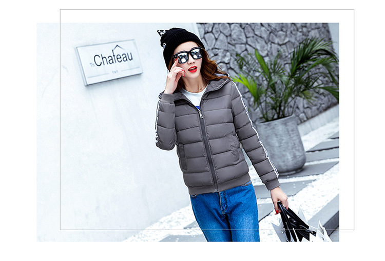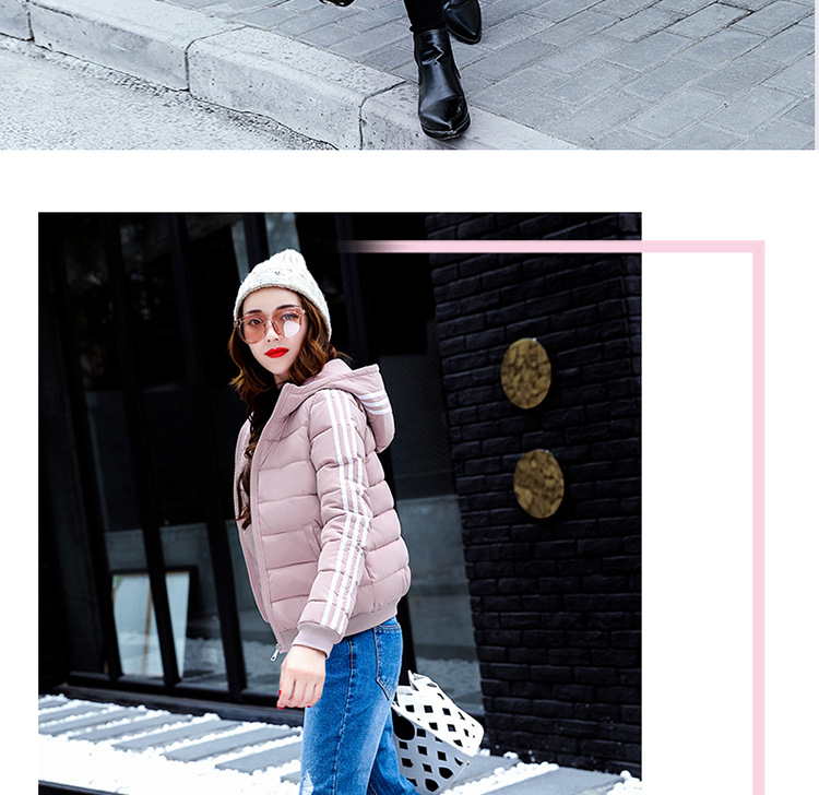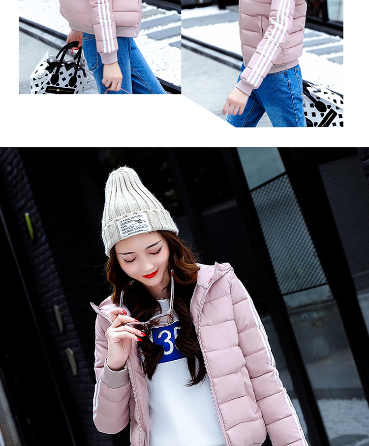 European and American Clothing Cotton-Padded Clothes, Autumn and Winter Three-Stripe Down-Padded Clothes, Women's Short Korean Style Student Group Clothes, Sports Cotton-Padded Jackets