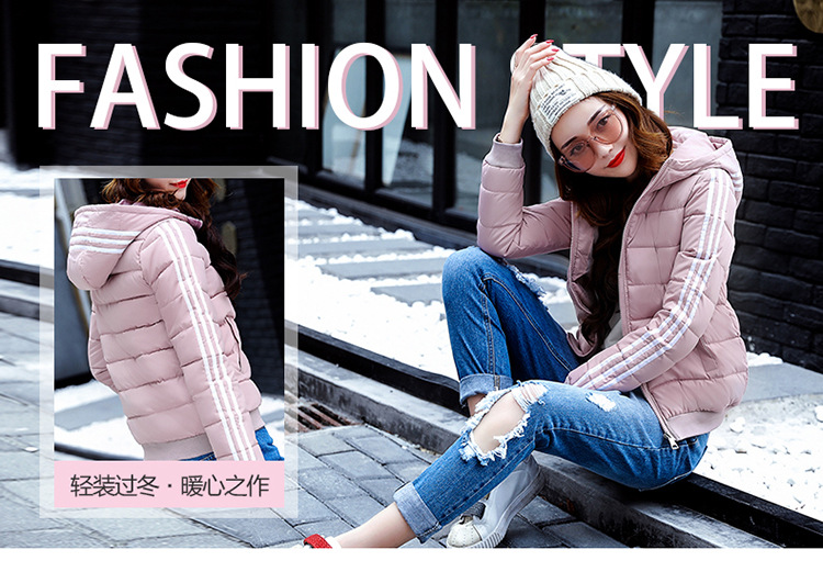 2018棉衣女外套秋冬新款三条杠反季羽绒棉服女短款韩版修身小棉袄