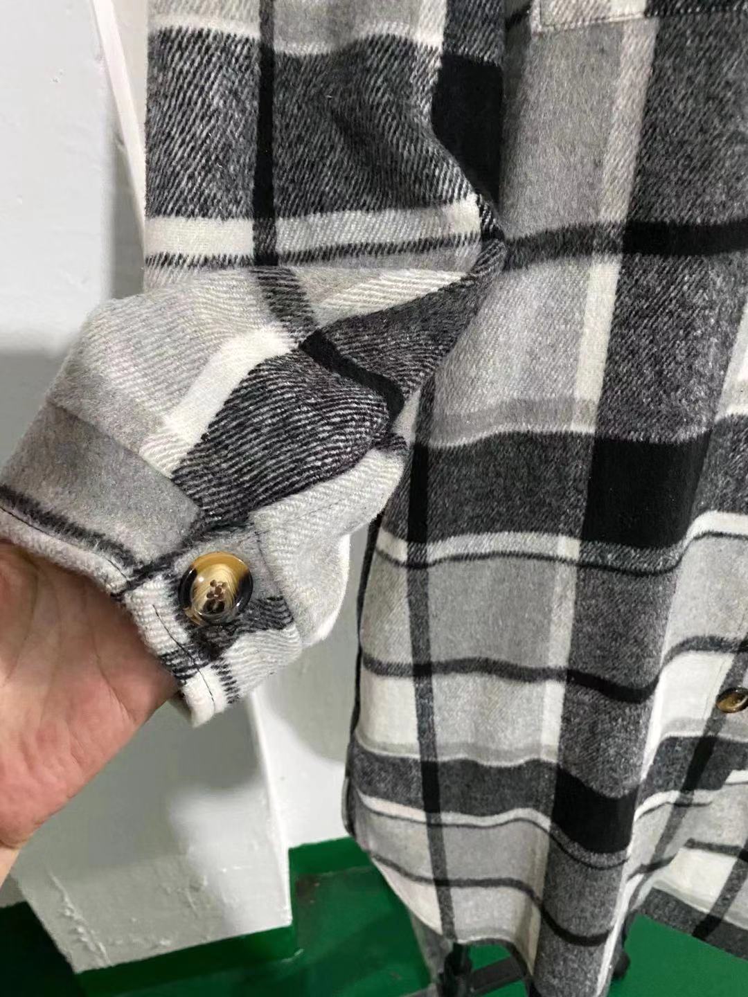 • 2022 Autumn and Winter European and American Style Windbreaker Jacket Side Slit Lapel Loose Woolen Plaid Jacket Real Shot Ready Stock