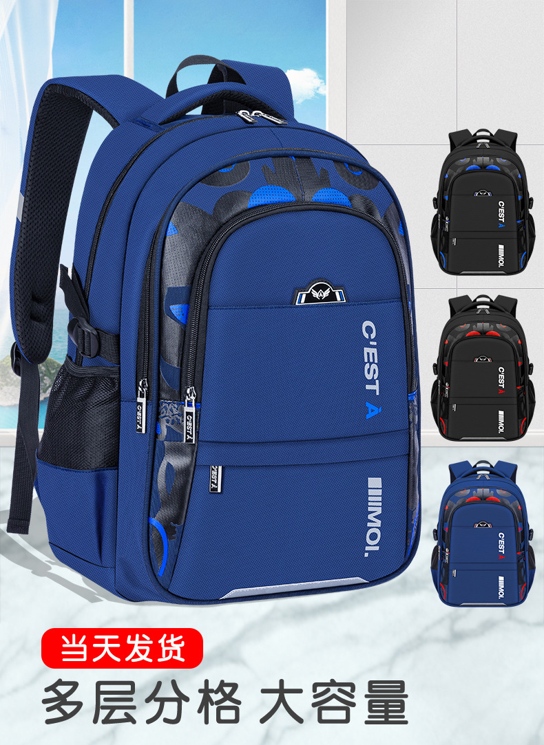 • 2024 New Boys School Bags for Primary School Students 3-6-9 Grade Solid Big Children Junior High School Students Large Capacity Wholesale Backpacks
