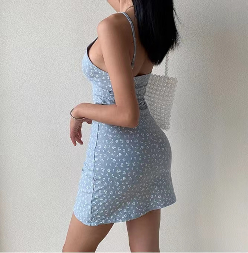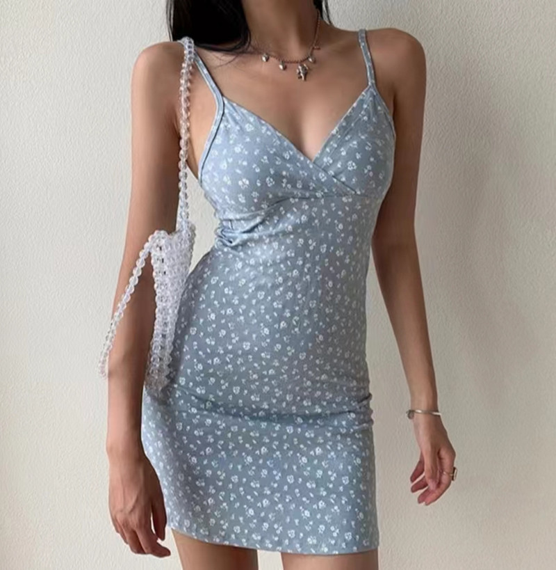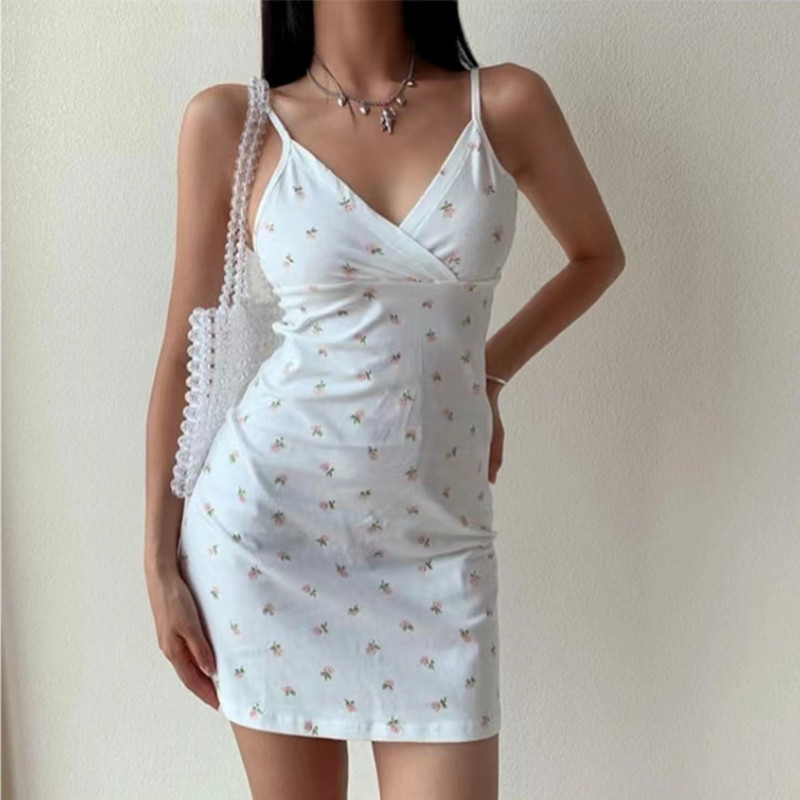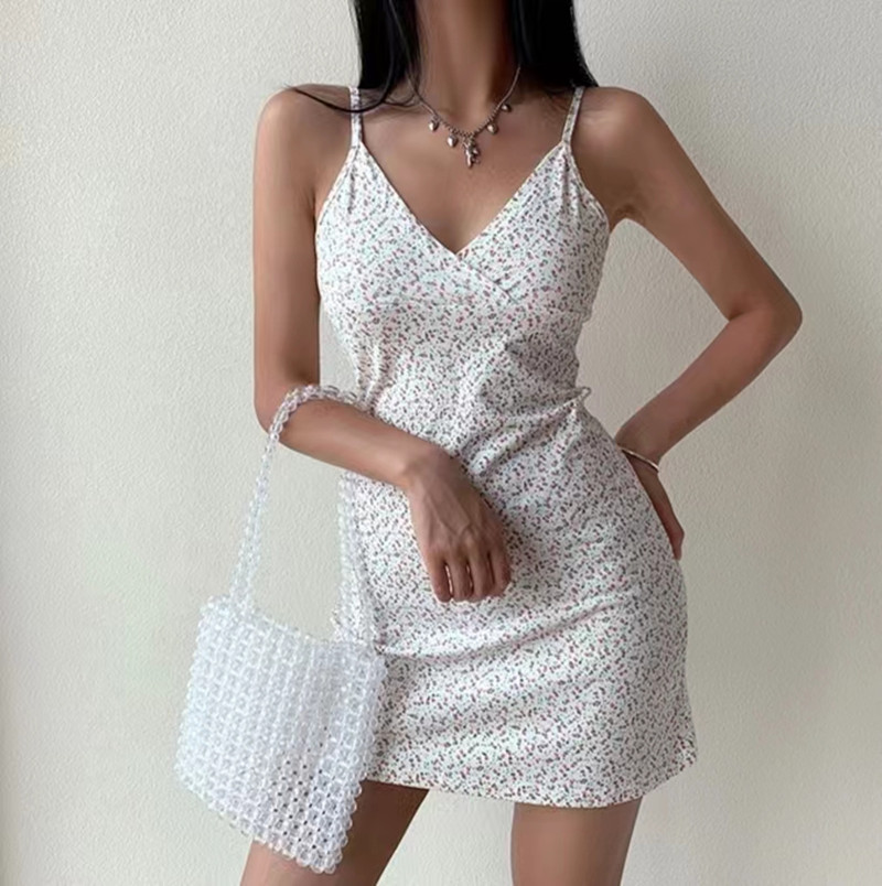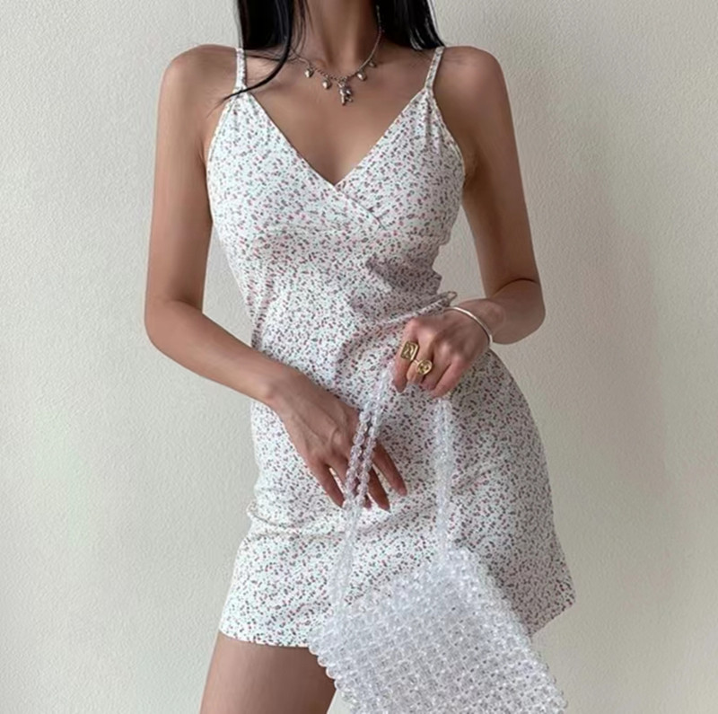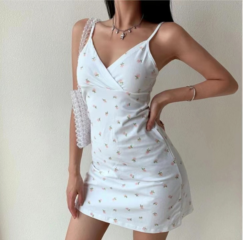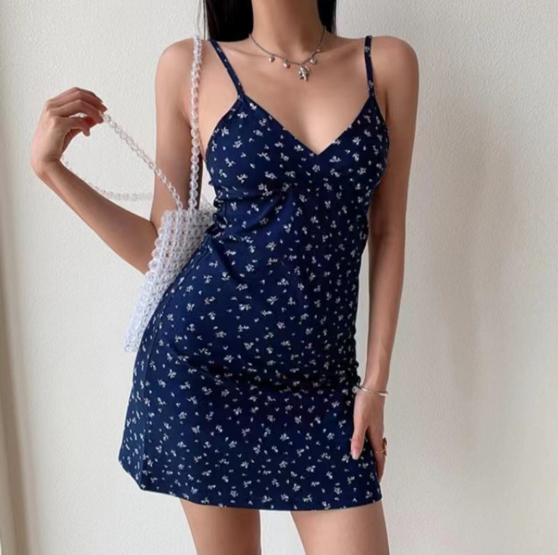 • 2023 New Summer European and American Sexy Floral Dress Amazon Retro Printed V-Neck Suspender Women's Clothing Export