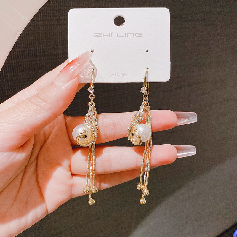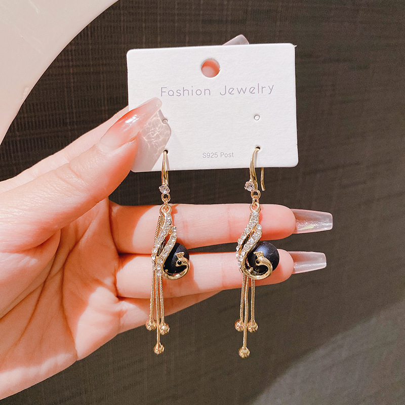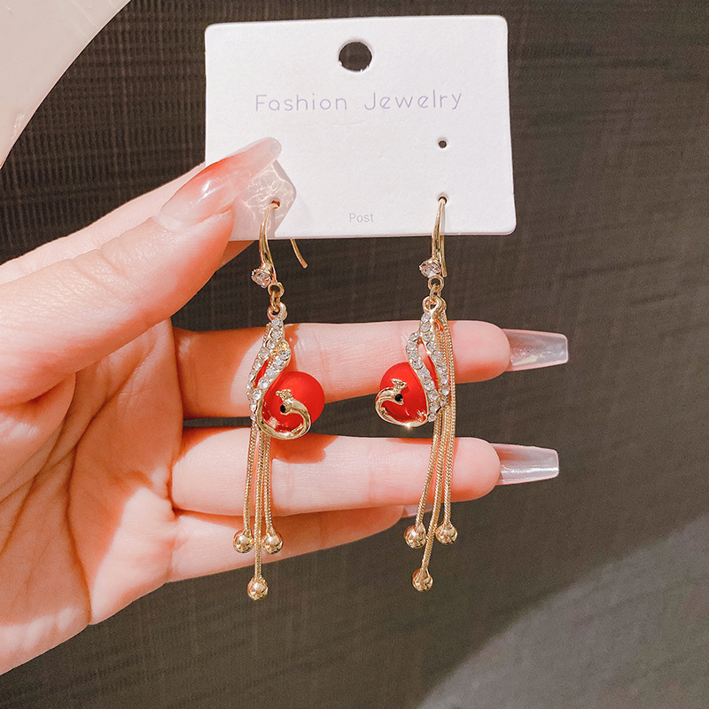 • 2024 New Trendy Red Peacock Tassel Earrings High-End Earrings Internet Celebrity Long Elegant Personalized Earrings for Women