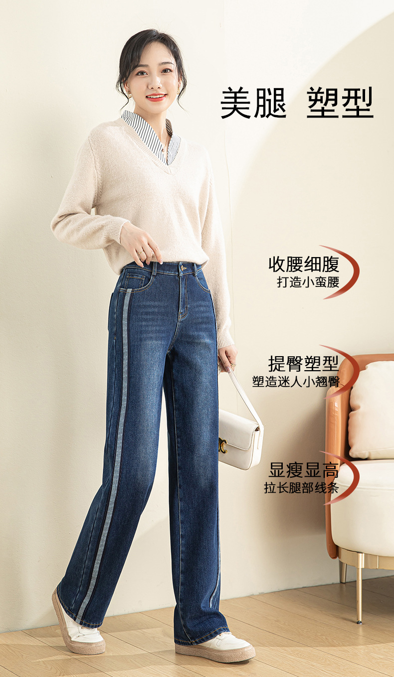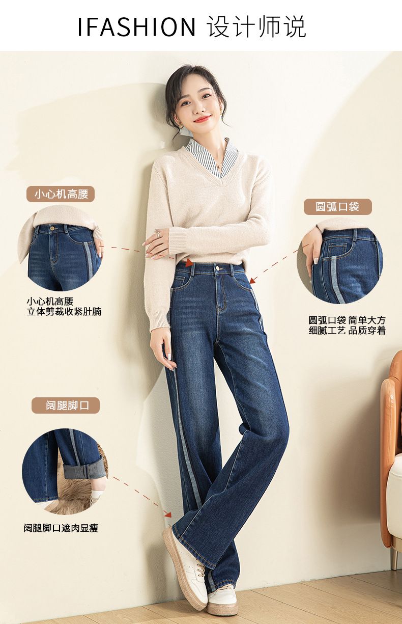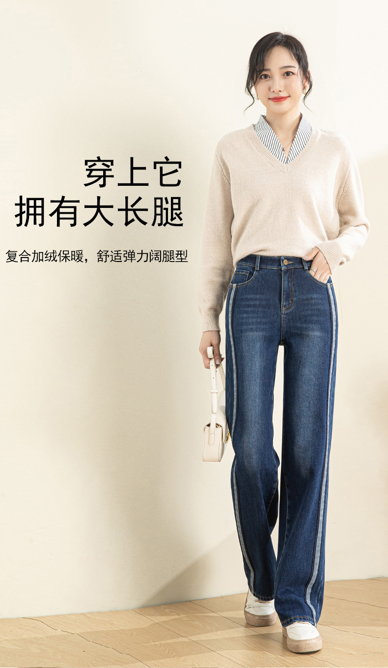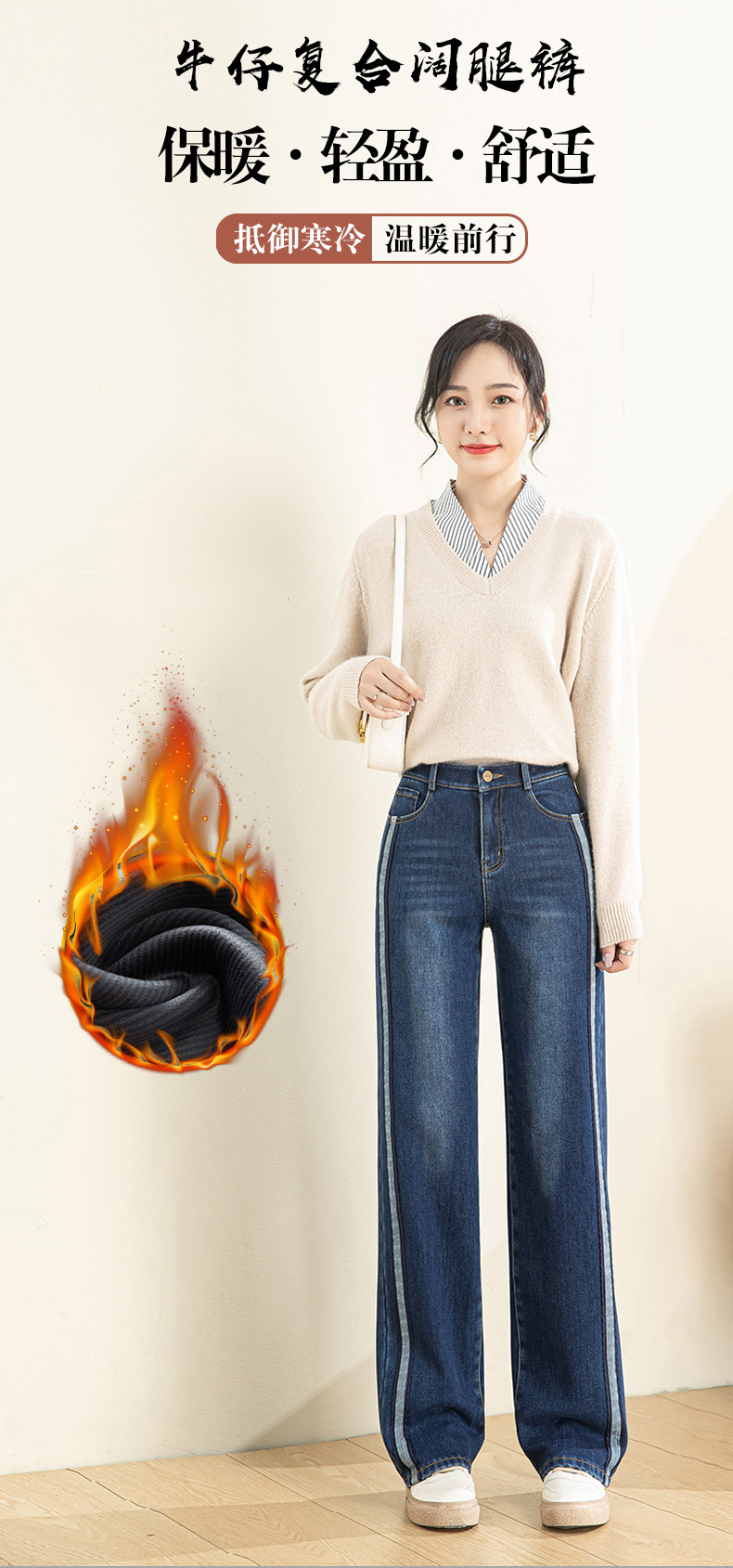 • If 2025 Winter Composite Thickened Jeans Women's High Waist Korean Style Velvet Warm Floor-Mopping Pants Wide Leg Pants 9111H