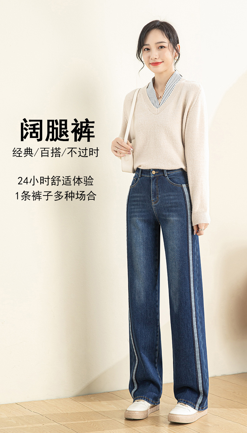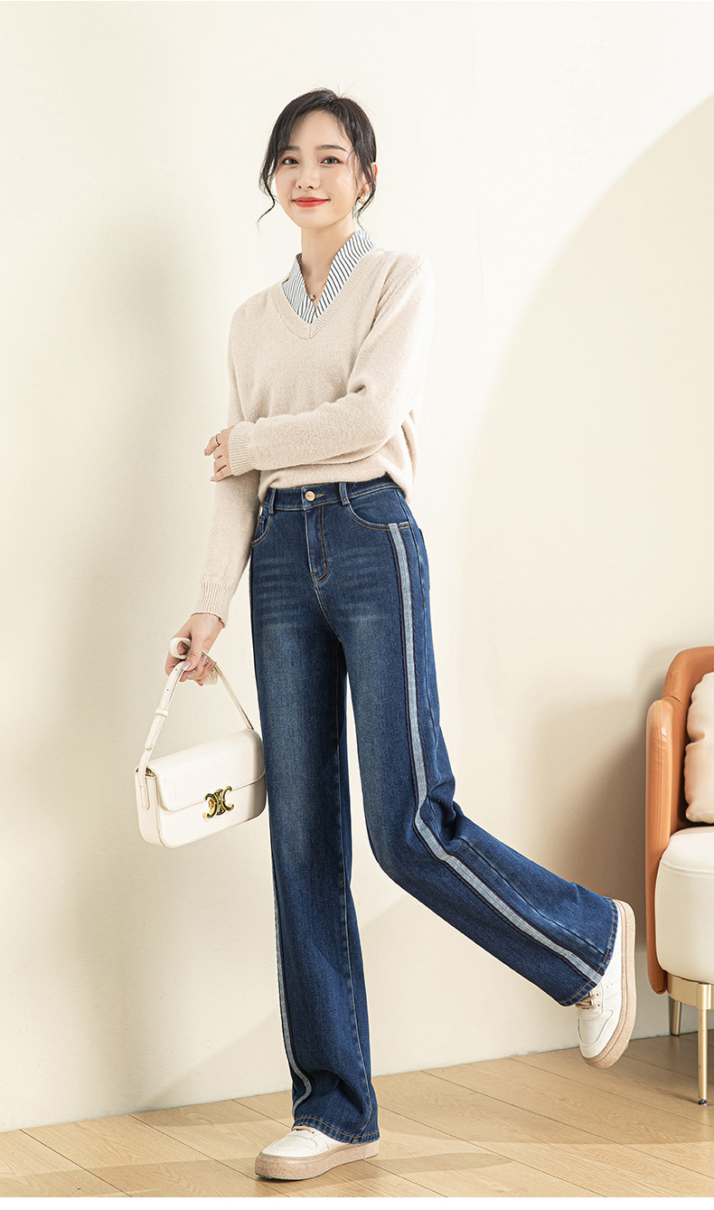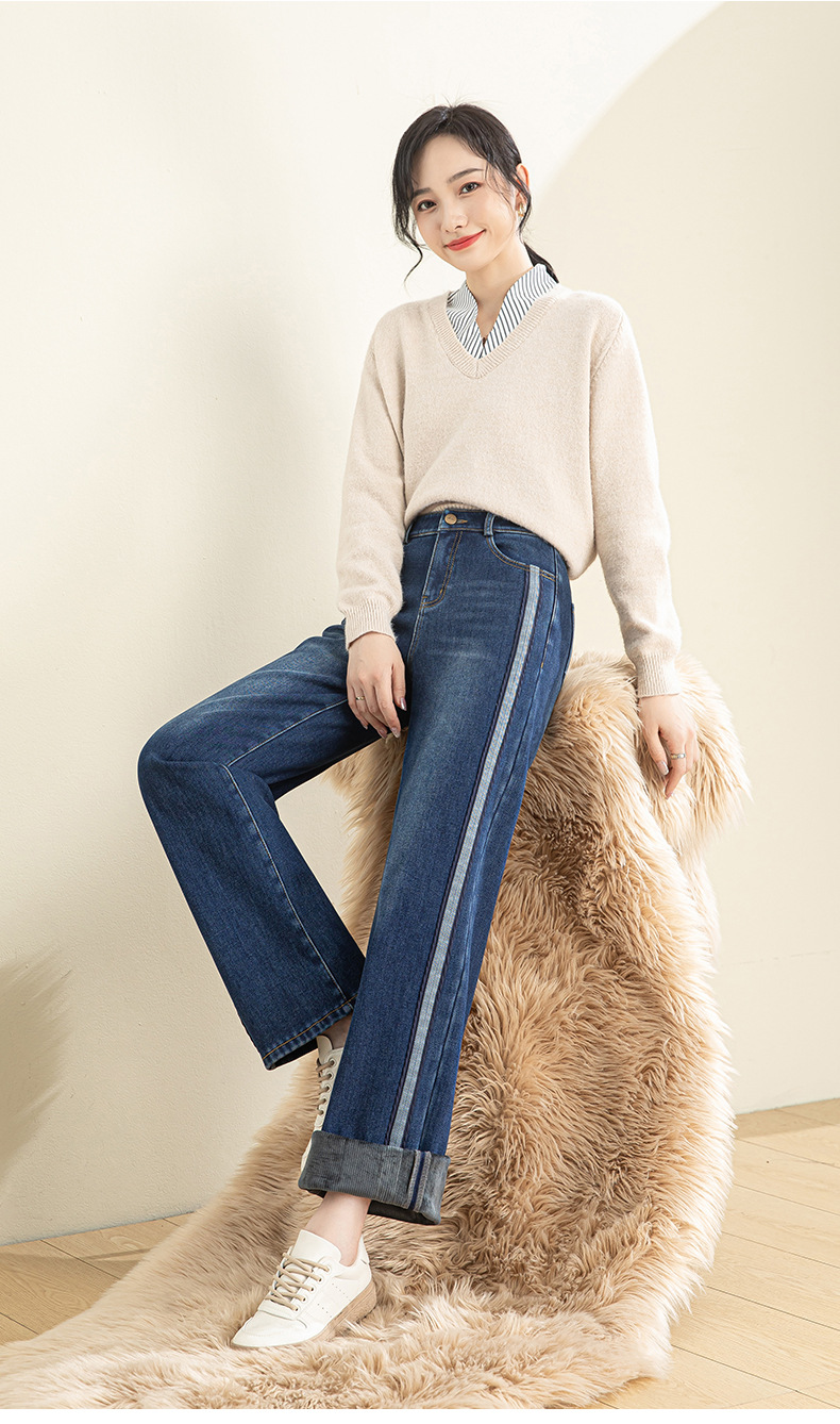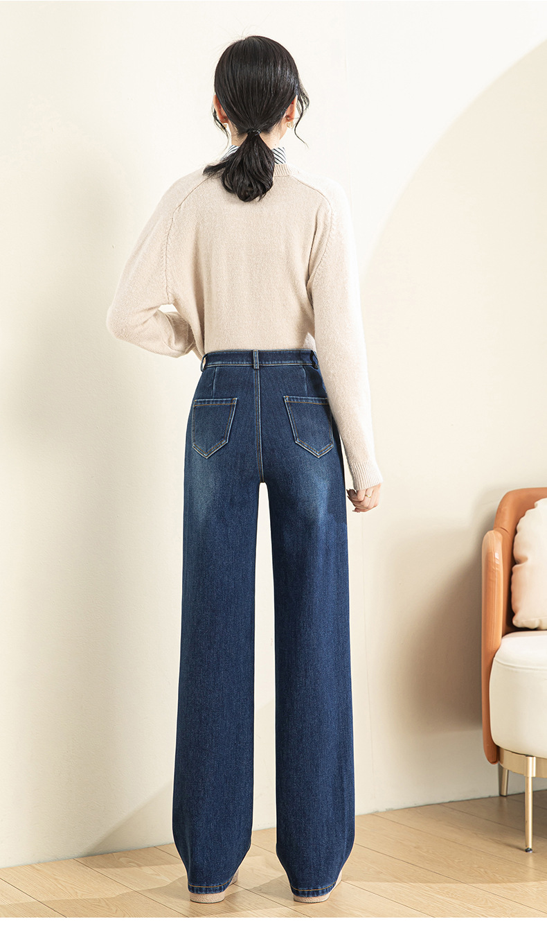 • If 2025 Winter Composite Thickened Jeans Women's High Waist Korean Style Velvet Warm Floor-Mopping Pants Wide Leg Pants 9111H