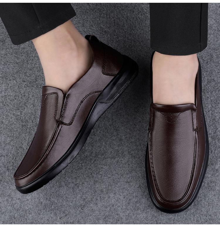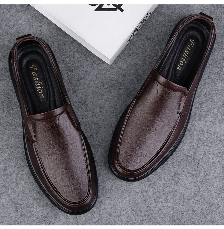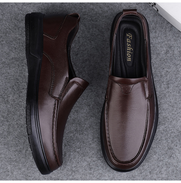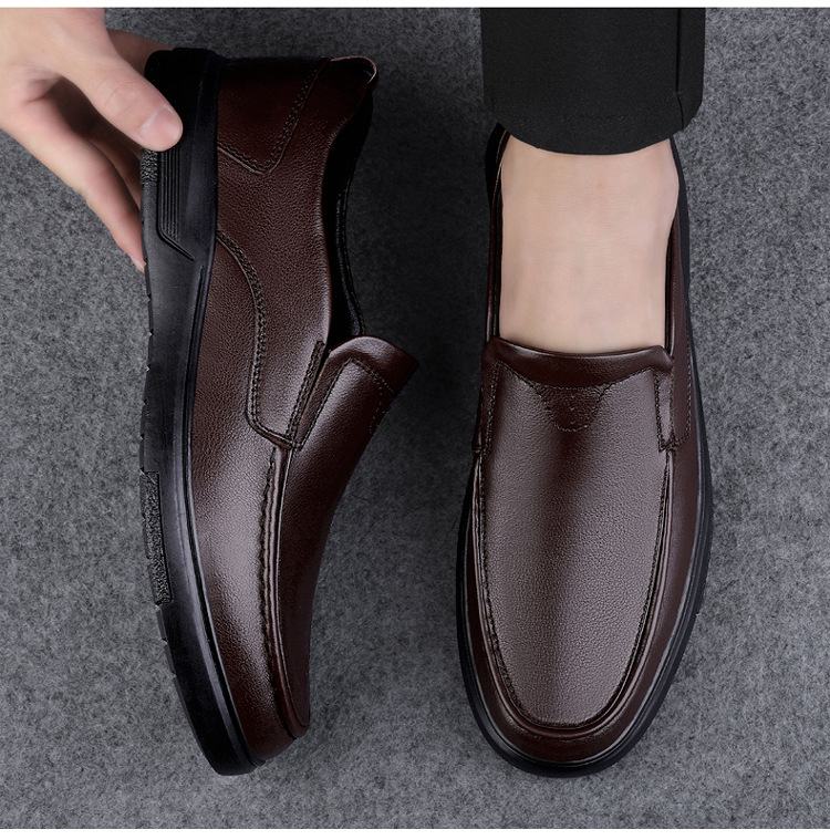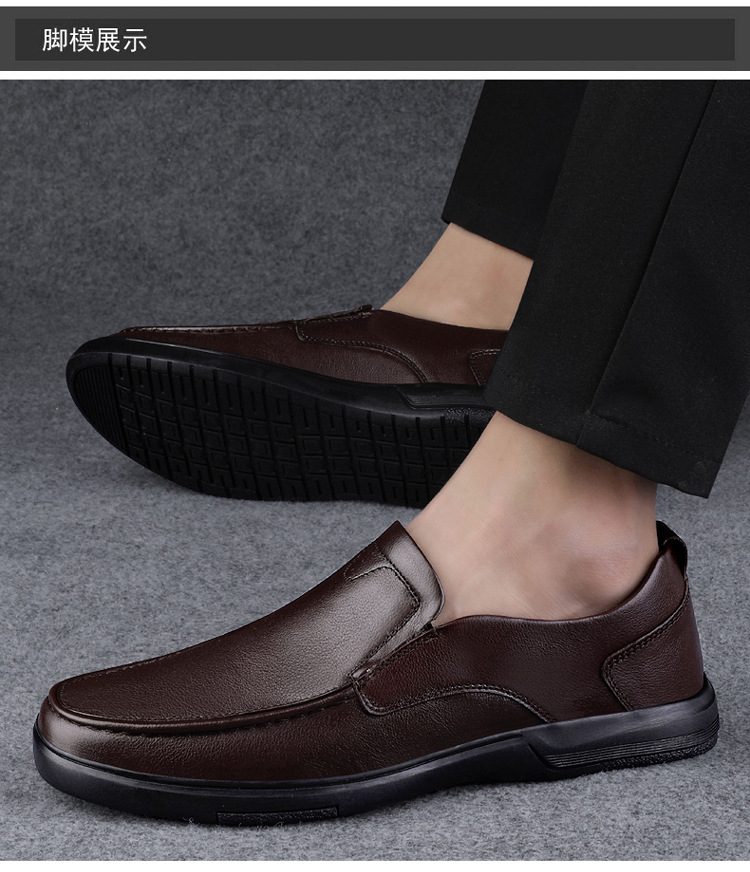 • 2023 Winter new men's loafers first layer cowhide slip-on middle-aged dad leather shoes breathable casual shoes
