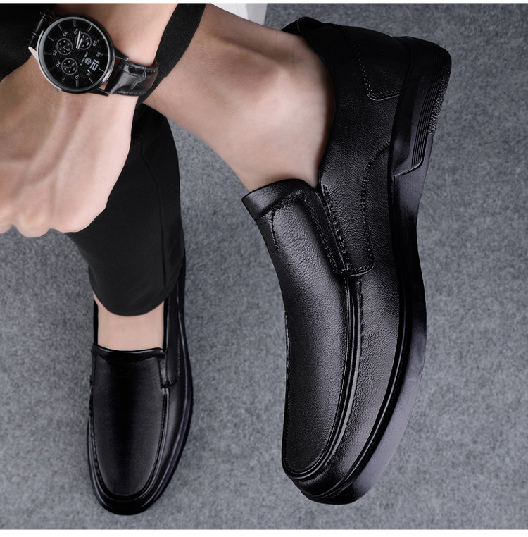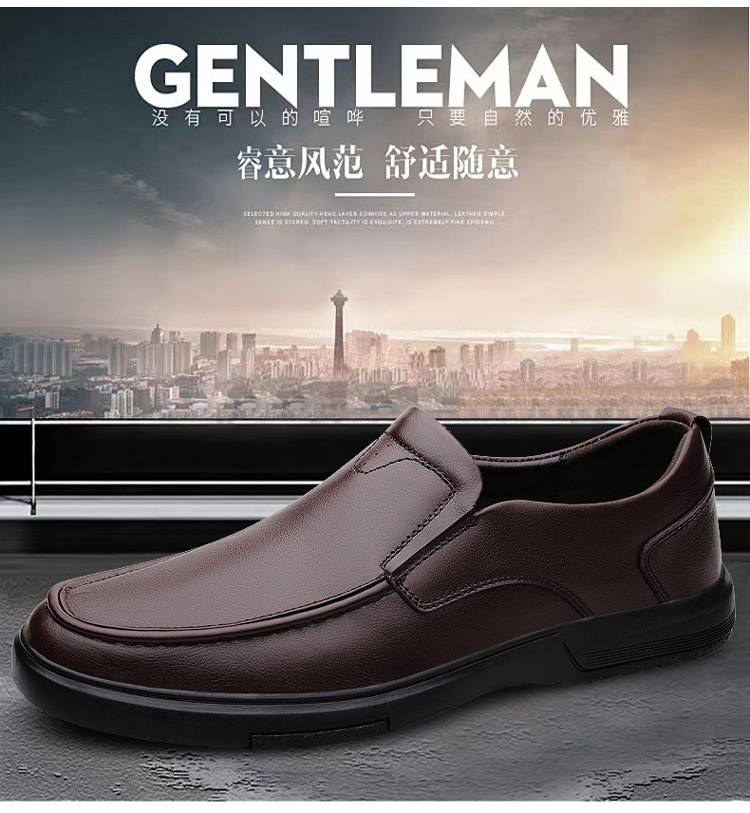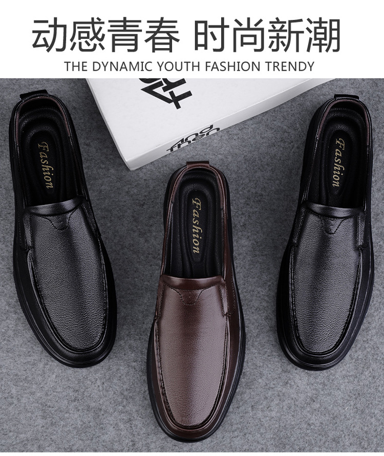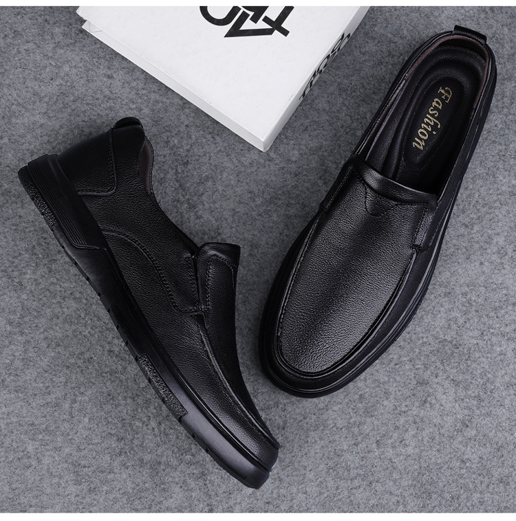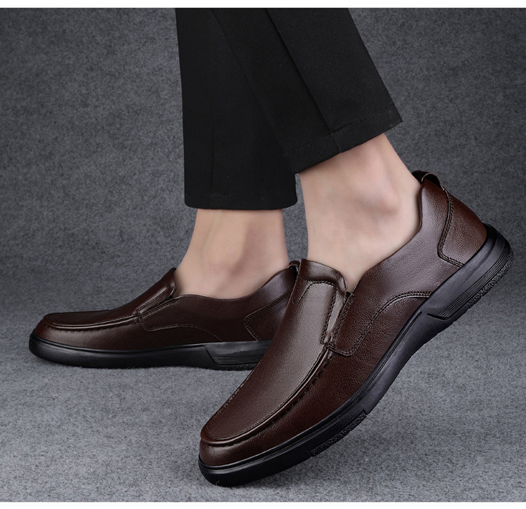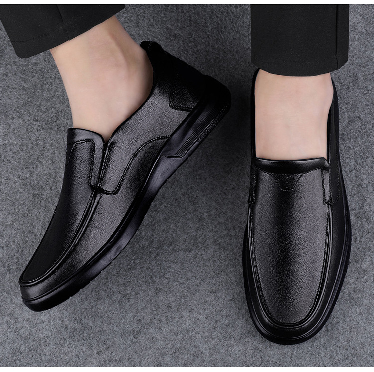 • 2023 Winter new men's loafers first layer cowhide slip-on middle-aged dad leather shoes breathable casual shoes