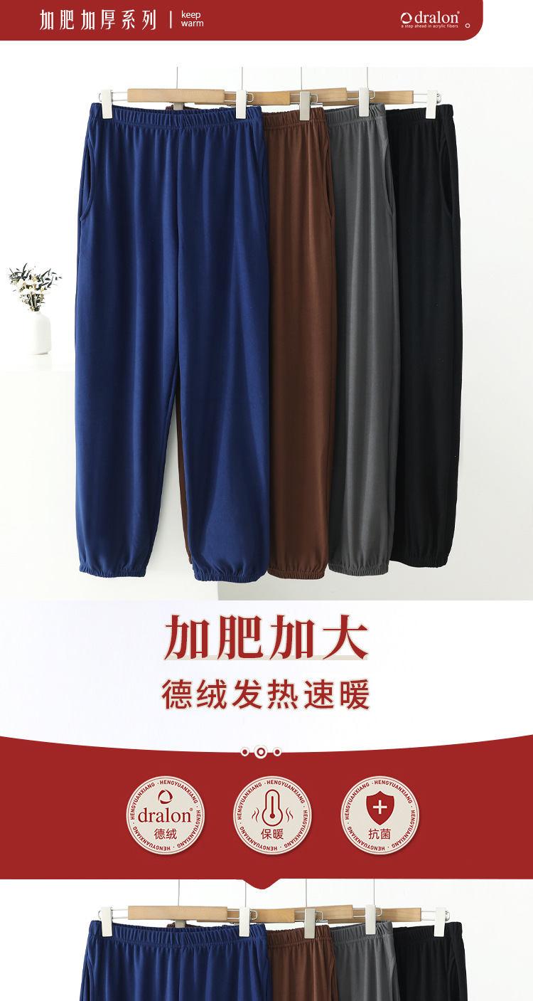 • 300kg fat guy loose bloomers middle-aged and elderly dad casual home pants men's winter fleece-lined thick warm pants