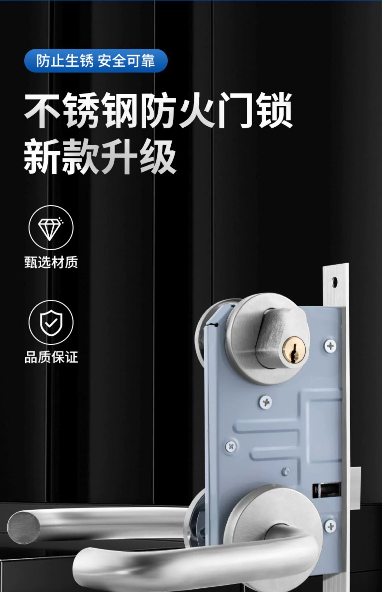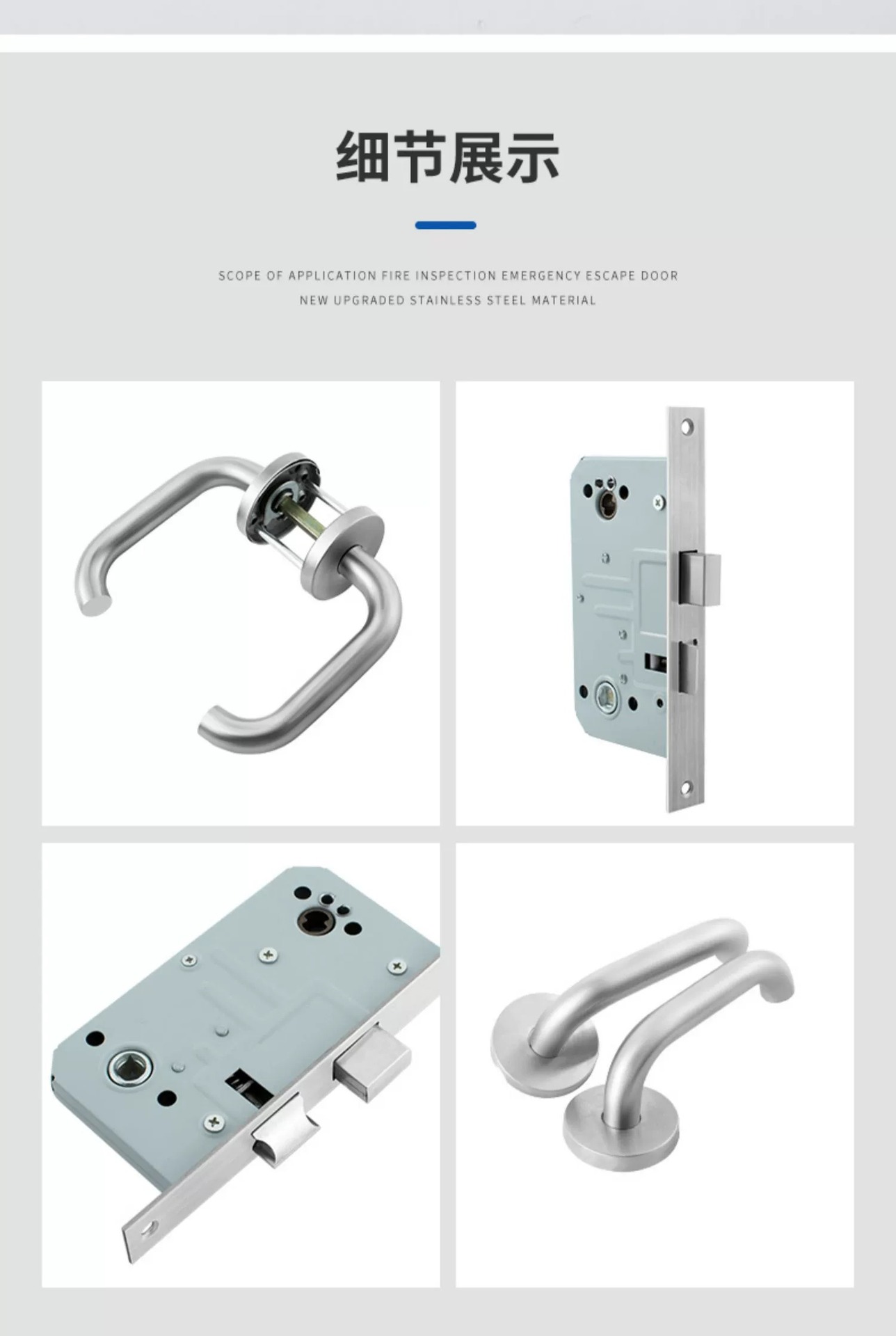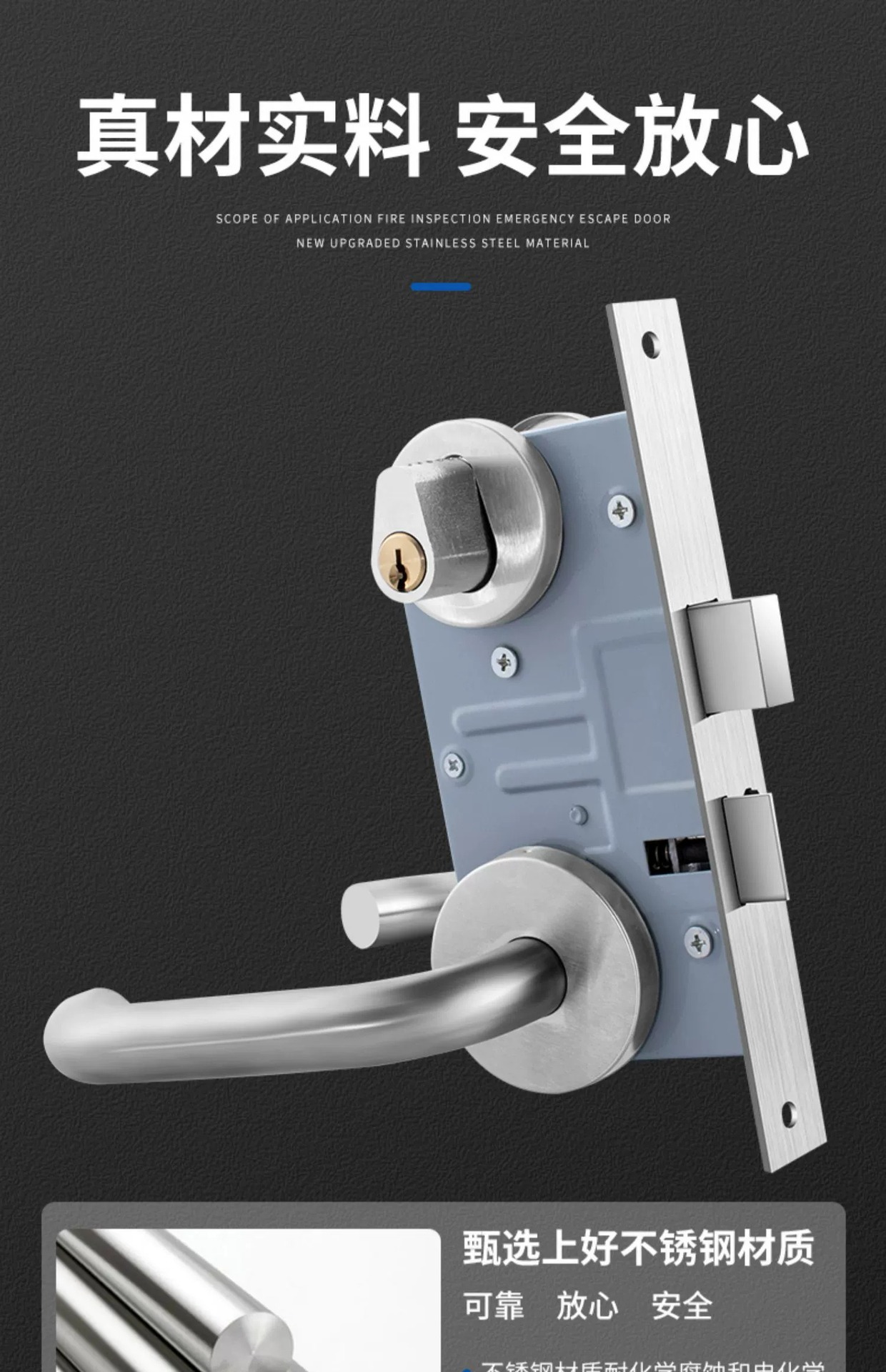 • 304 stainless steel fireproof door lock full set of universal fire door lock cylinder channel lock accessories handle fire lock body