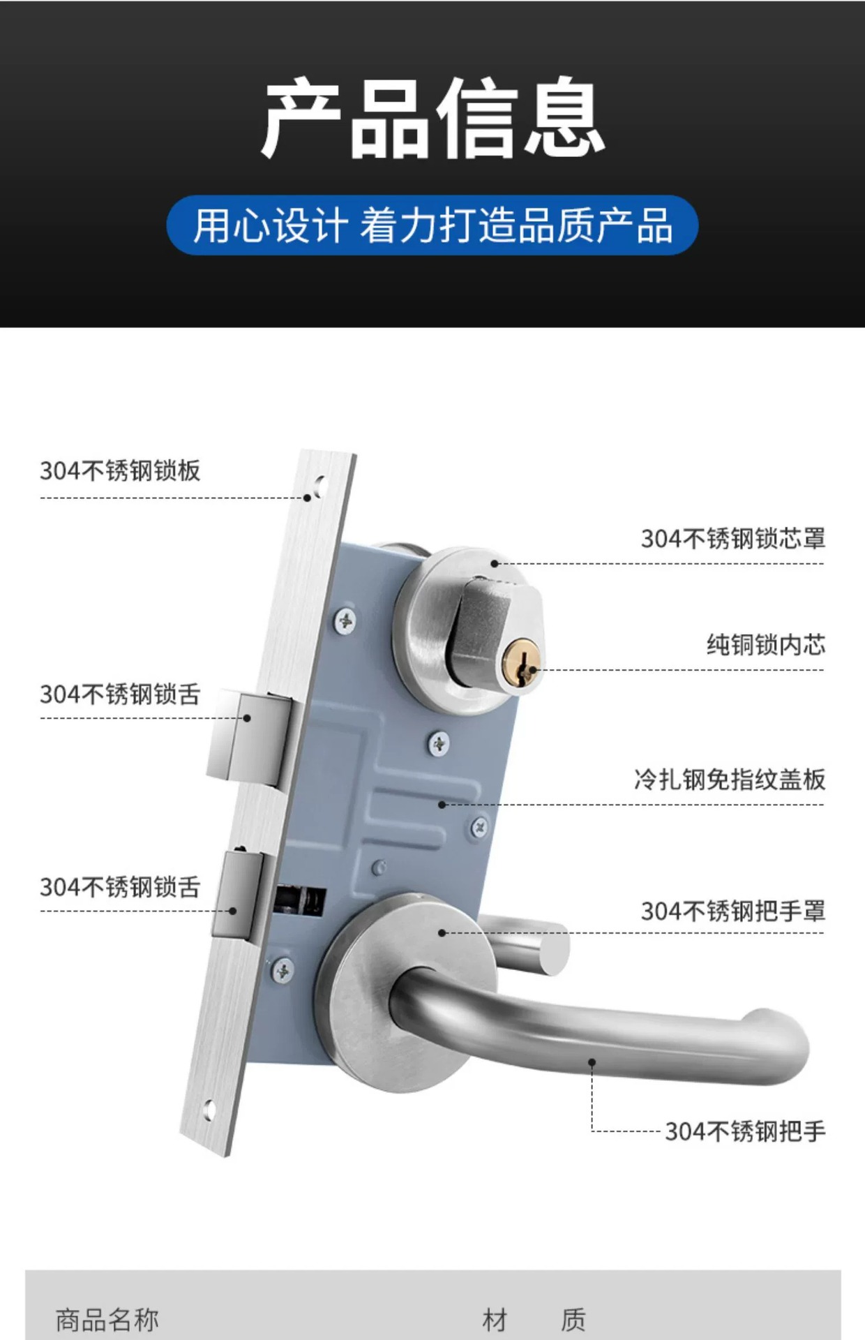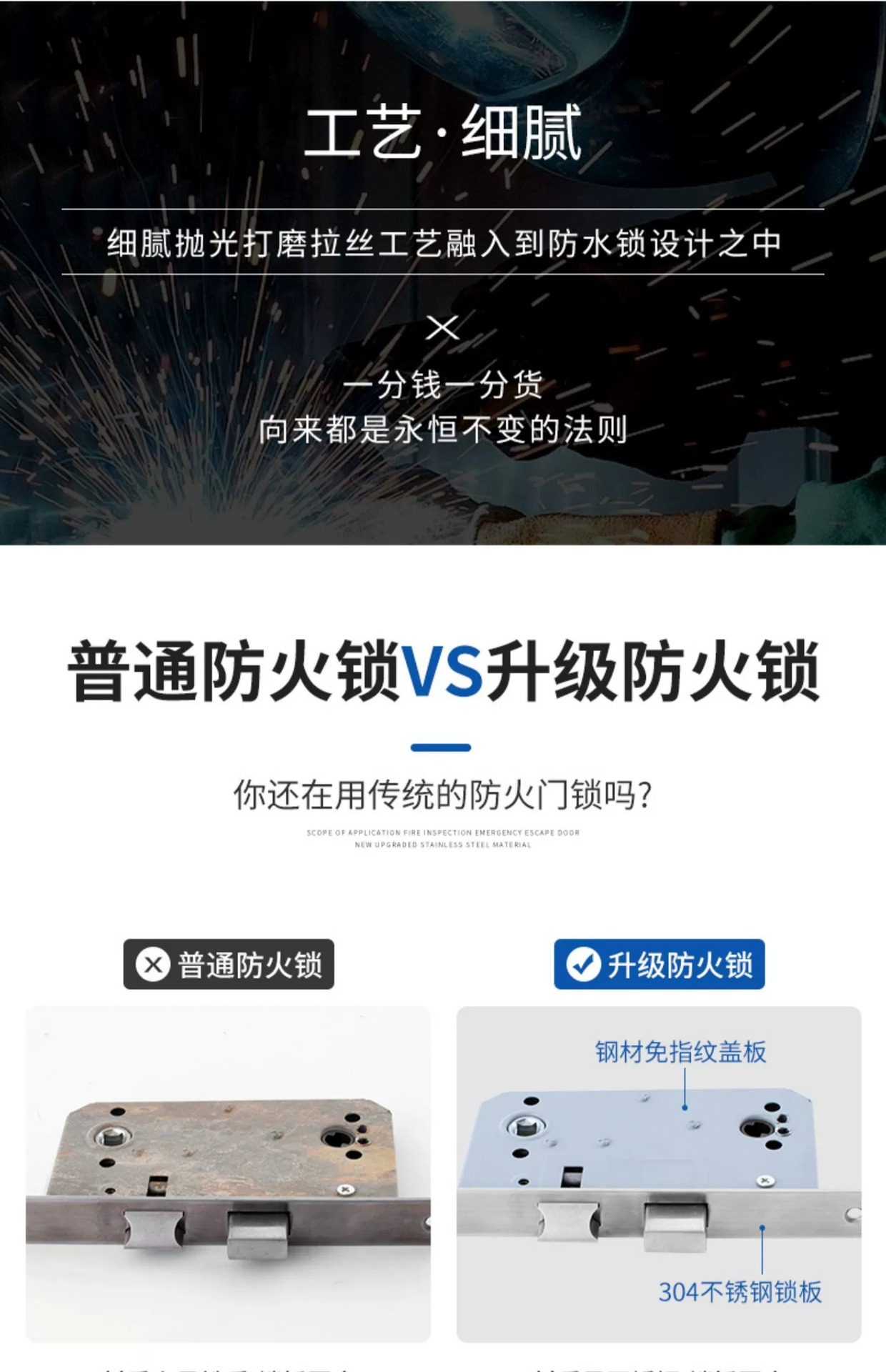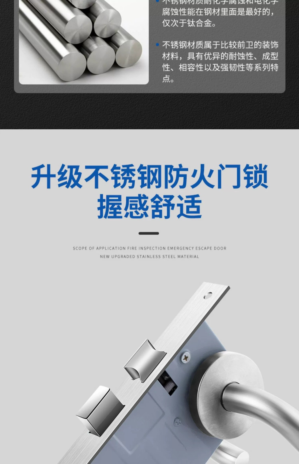 • 304 stainless steel fireproof door lock full set of universal fire door lock cylinder channel lock accessories handle fire lock body