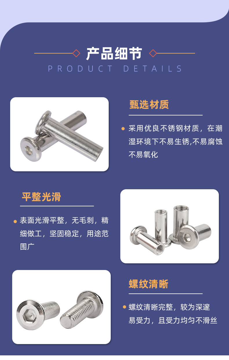 • 304 Stainless Steel Lock Screw Furniture Splint Nut Inverted Edge Hexagon Socket Splint Mother and Mother Screw M3-M8