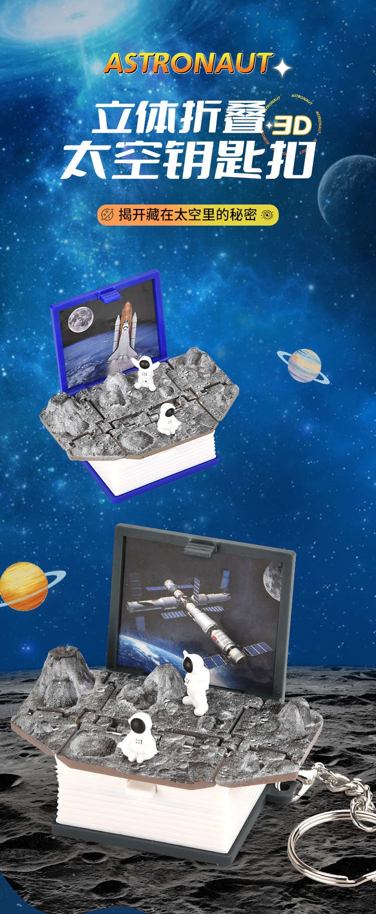• 3D Stereo Explosive Pill Foldableing Book Key Ring Astronaut Dinosaur Kidsren's Toy Pendant Birthday Gift for Classmates