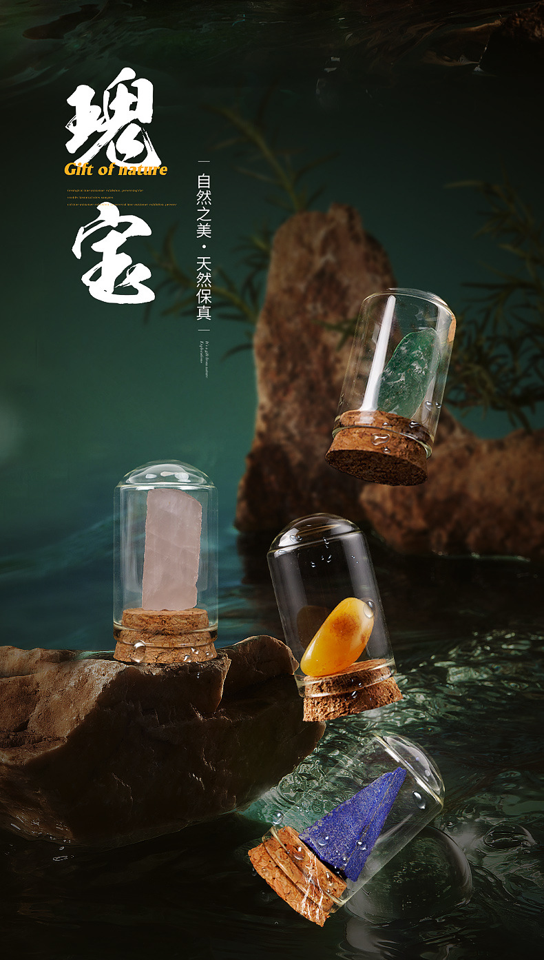 • Natural Crystal Raw Stone Miniature World in a Bottle Mineral Specimen Wishing Bottle Raw Stone Colorful Gemstone Manufacturer Wholesale