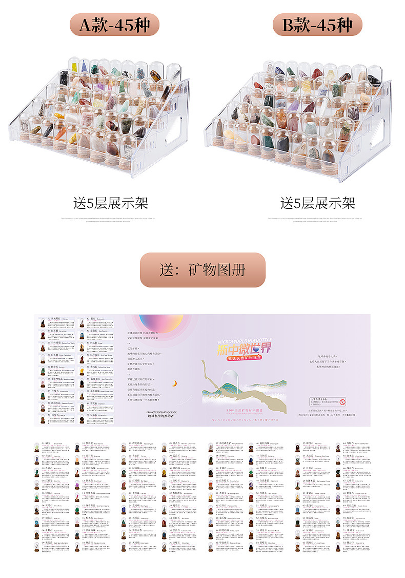 Natural Crystal Raw Stone Miniature World in a Bottle Mineral Specimen Wishing Bottle Raw Stone Colorful Gemstone Manufacturer Wholesale