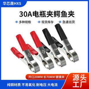 鳄鱼夹30A带护套 铁镀镍鸭嘴夹开口20mm电瓶夹电源夹子接线测试夹