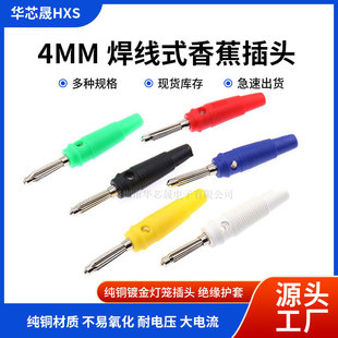 4mm香蕉插头纯铜镀镍镀金32A大电流高压香蕉接头音箱线免焊香蕉头