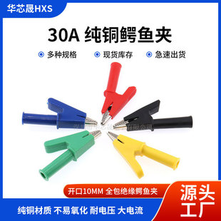 纯铜鳄鱼夹电瓶夹插式高压全包护套夹30A搭火线夹 开口10mm测试夹