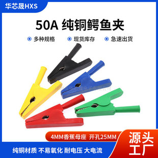 纯铜鳄鱼夹50A测试夹开口25mm高压大电流4mm插式安全护套实验夹子