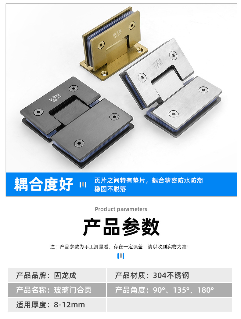 • 90 ° bathroom clip 304 stainless steel matte black thickened shower office glass door hinge 180 ° door clip hinge