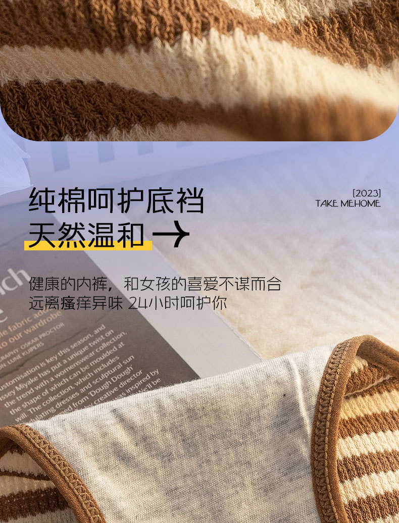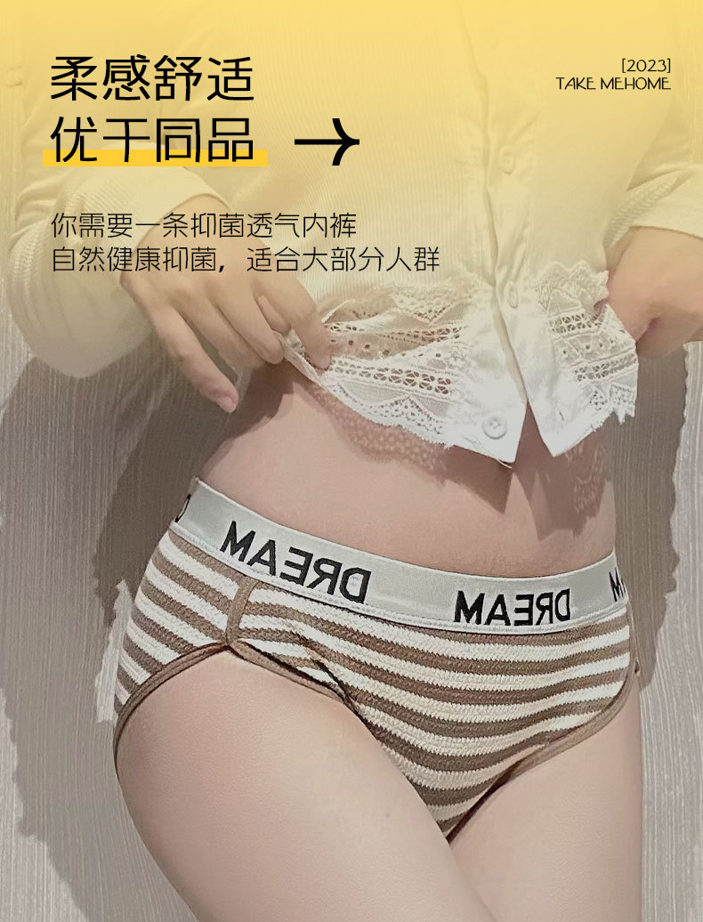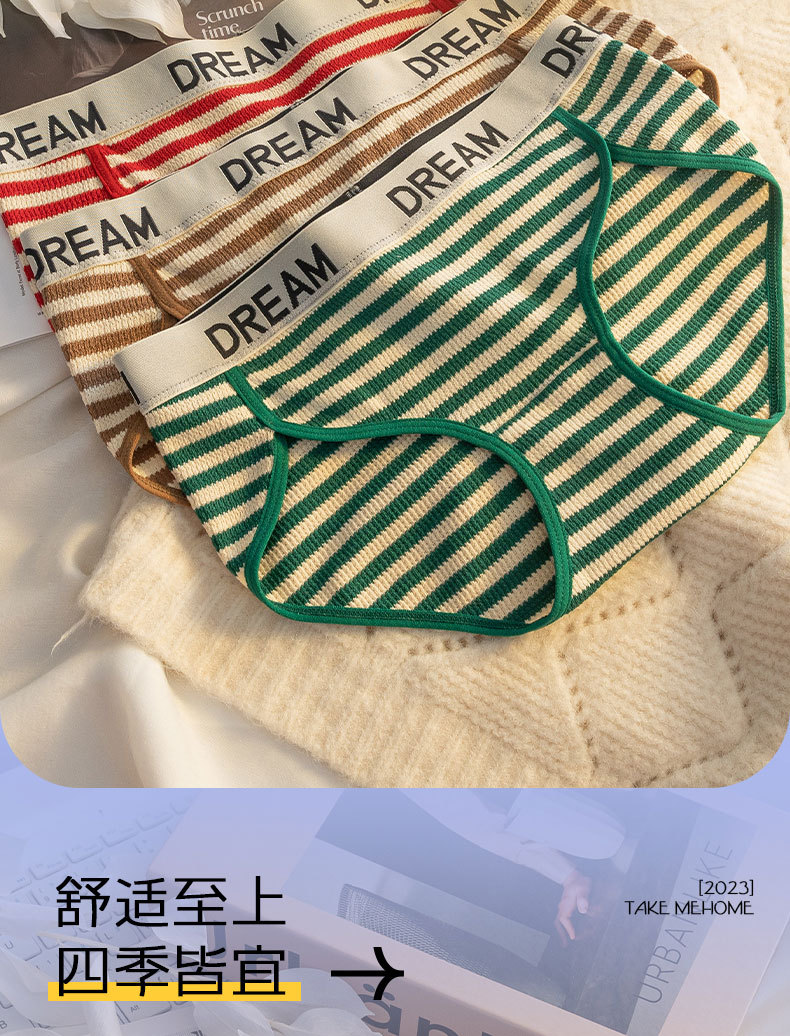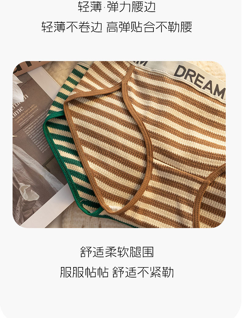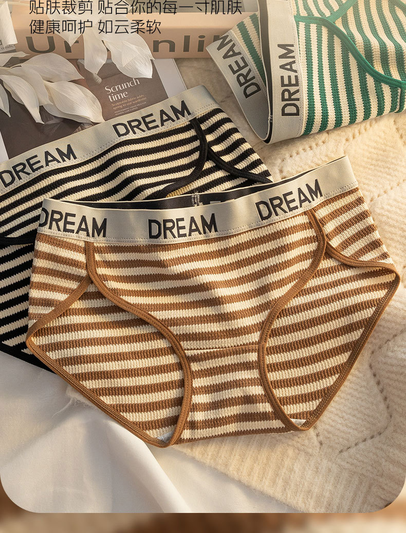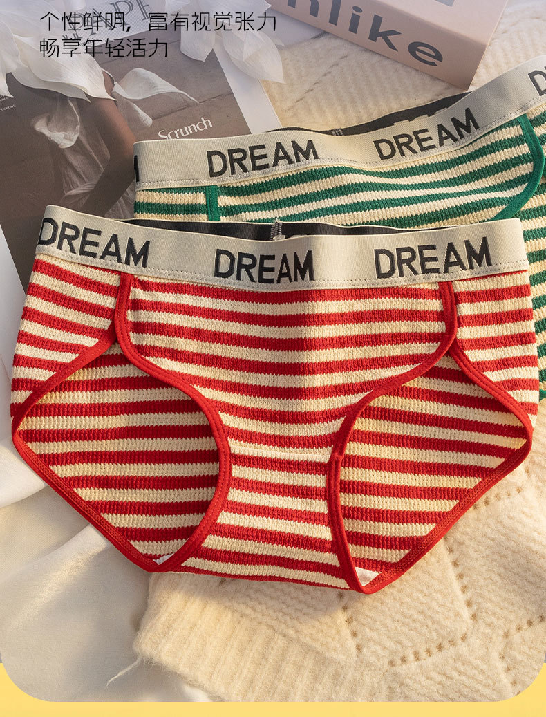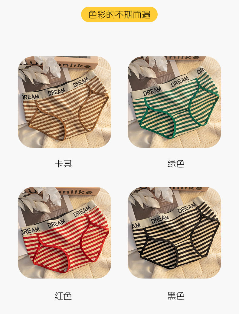 • American Style Striped Underwear Cotton Soft Skin-friendly Color Contrast Wind Comfortable Antibacterial Breathable Crotch Mid-waist Hip Sports Women's Underwear