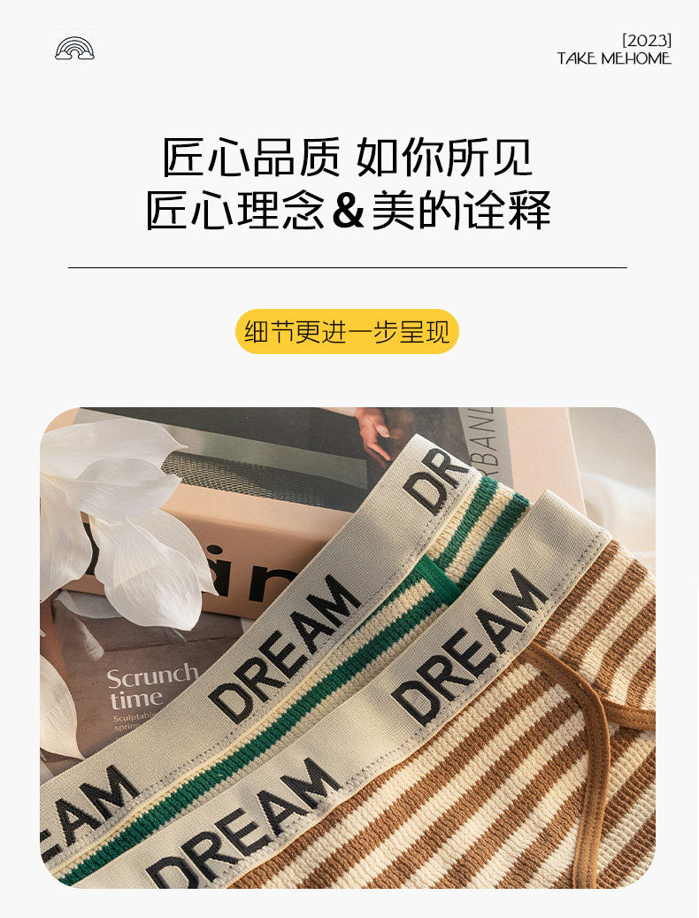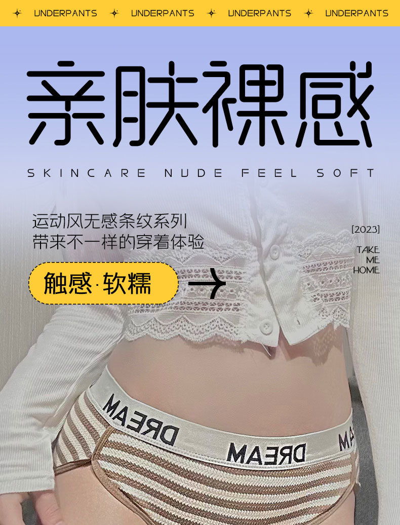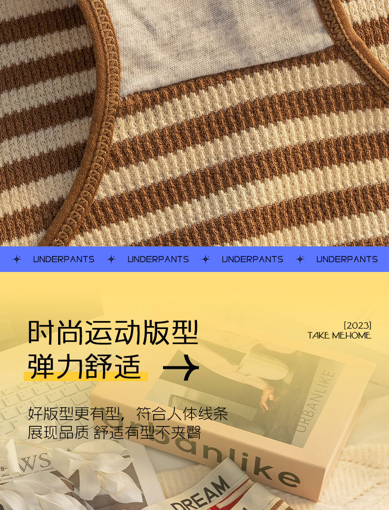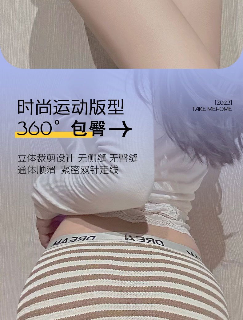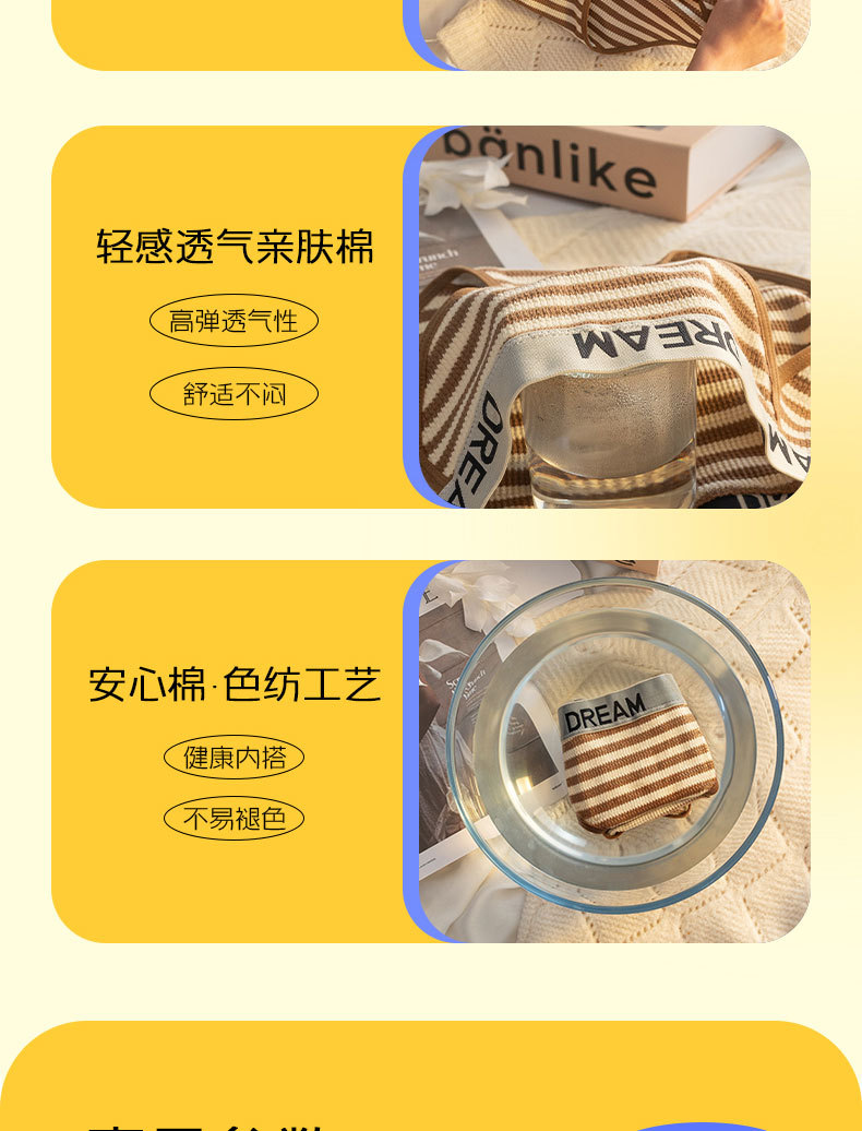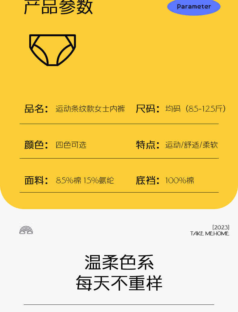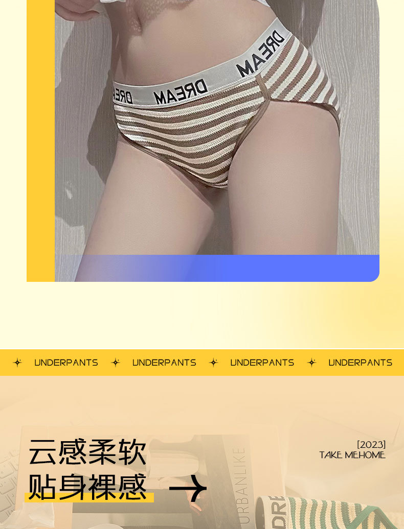 • American Style Striped Underwear Cotton Soft Skin-friendly Color Contrast Wind Comfortable Antibacterial Breathable Crotch Mid-waist Hip Sports Women's Underwear