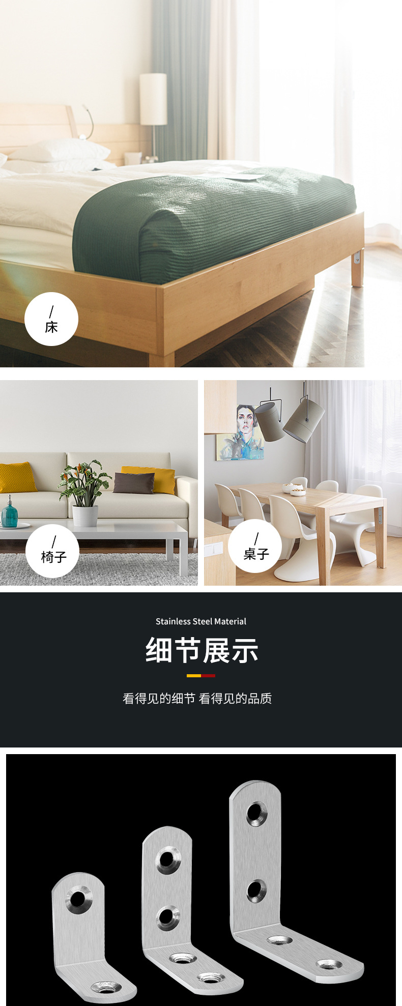• Stainless Steel Corner Code L-Shaped Wood Board Fixed Buckle 90-Degree Right-Angle Piece I-Shaped Furniture Bracket Link Piece Triangle Iron