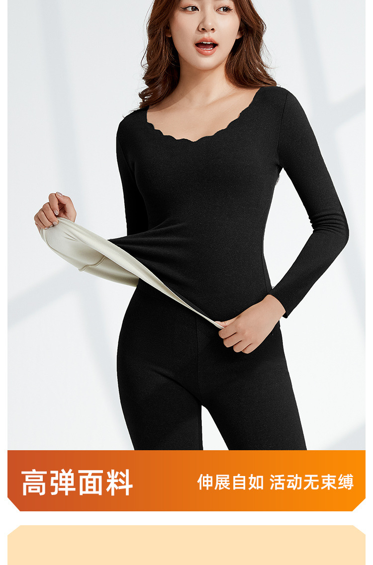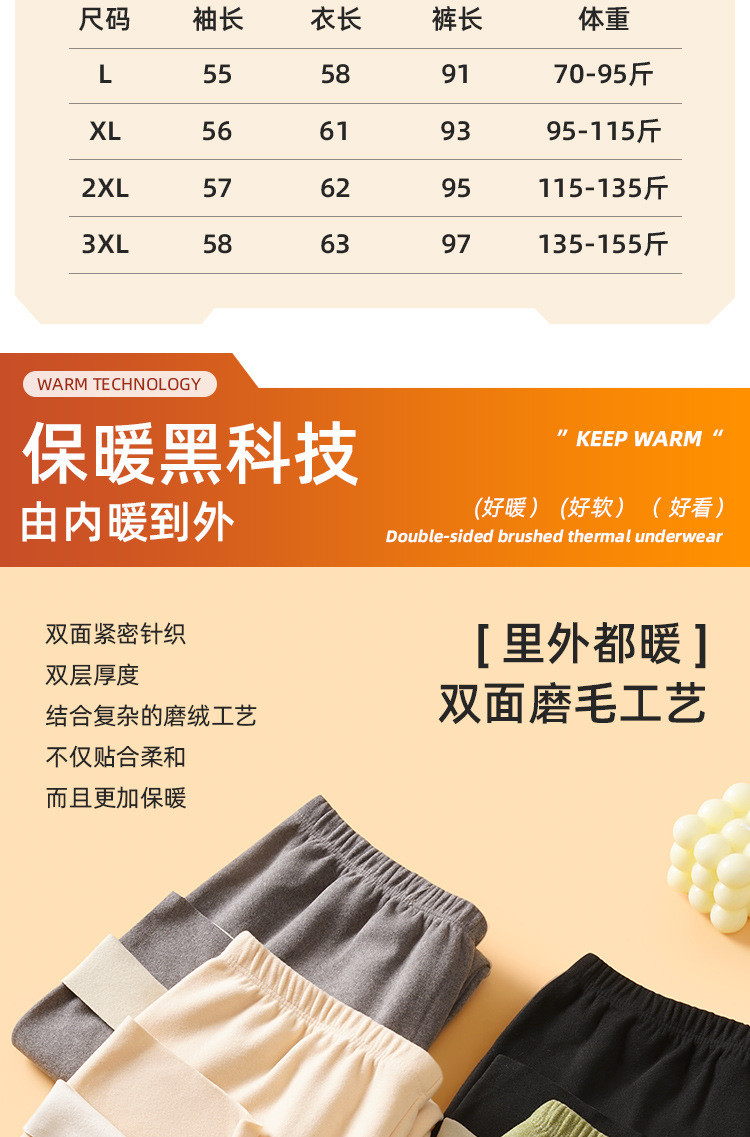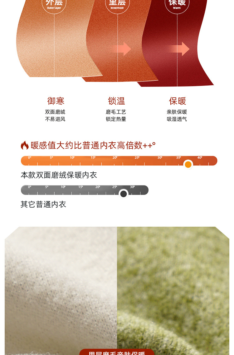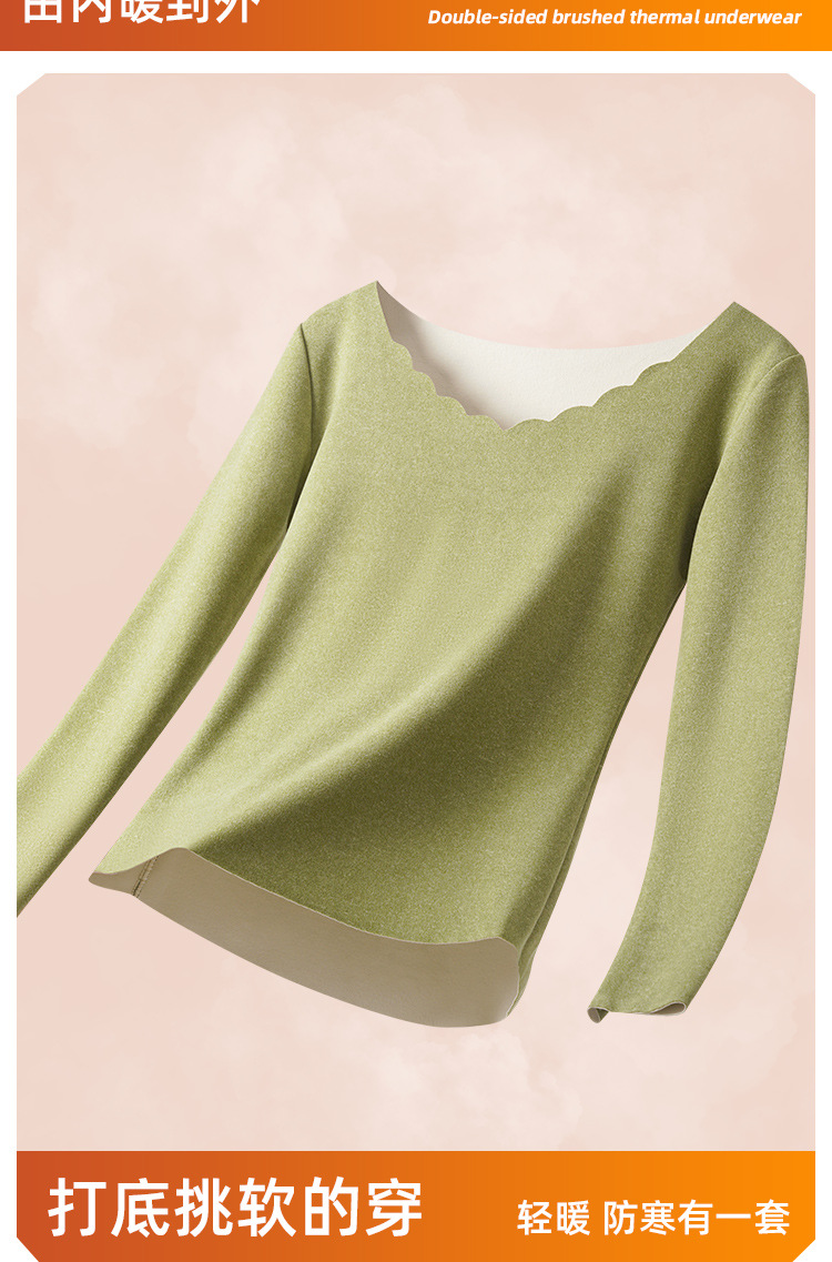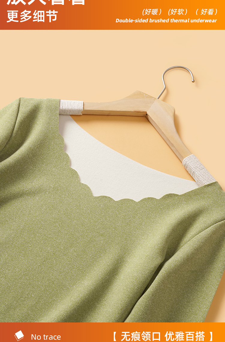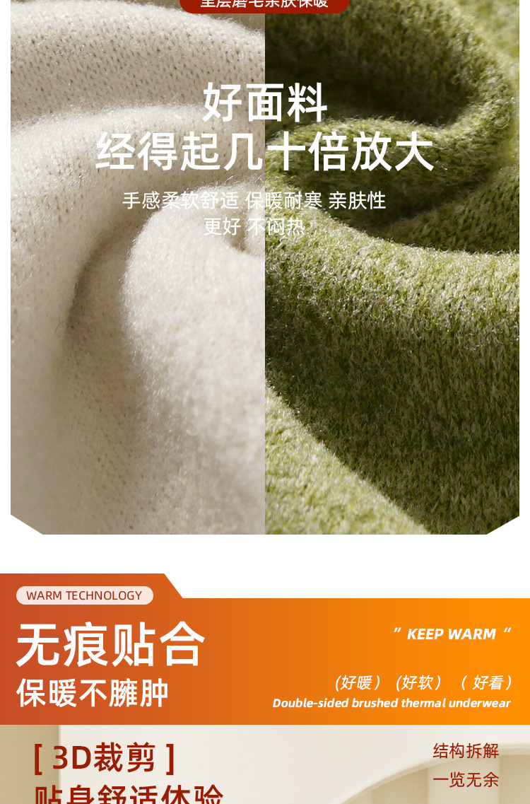 • Autumn and Winter velvet warm clothes fleece-lined thickened AB surface brushed self-heating thermal underwear long sleeve seamless base suit