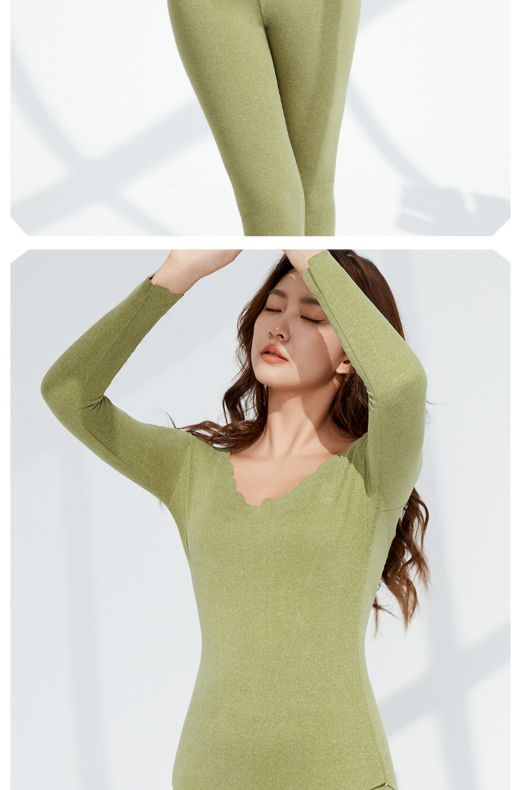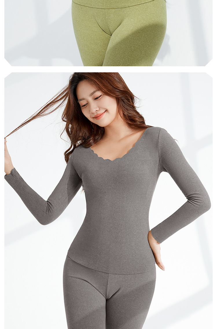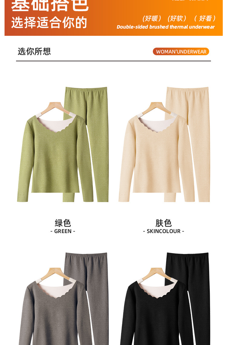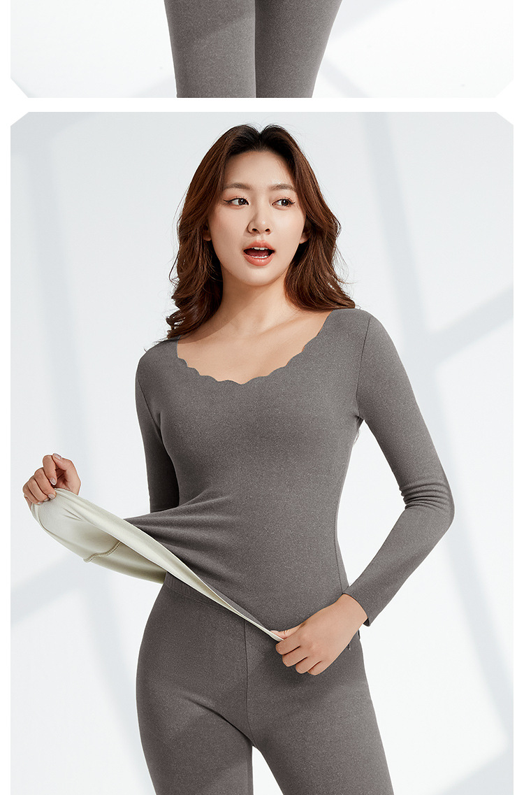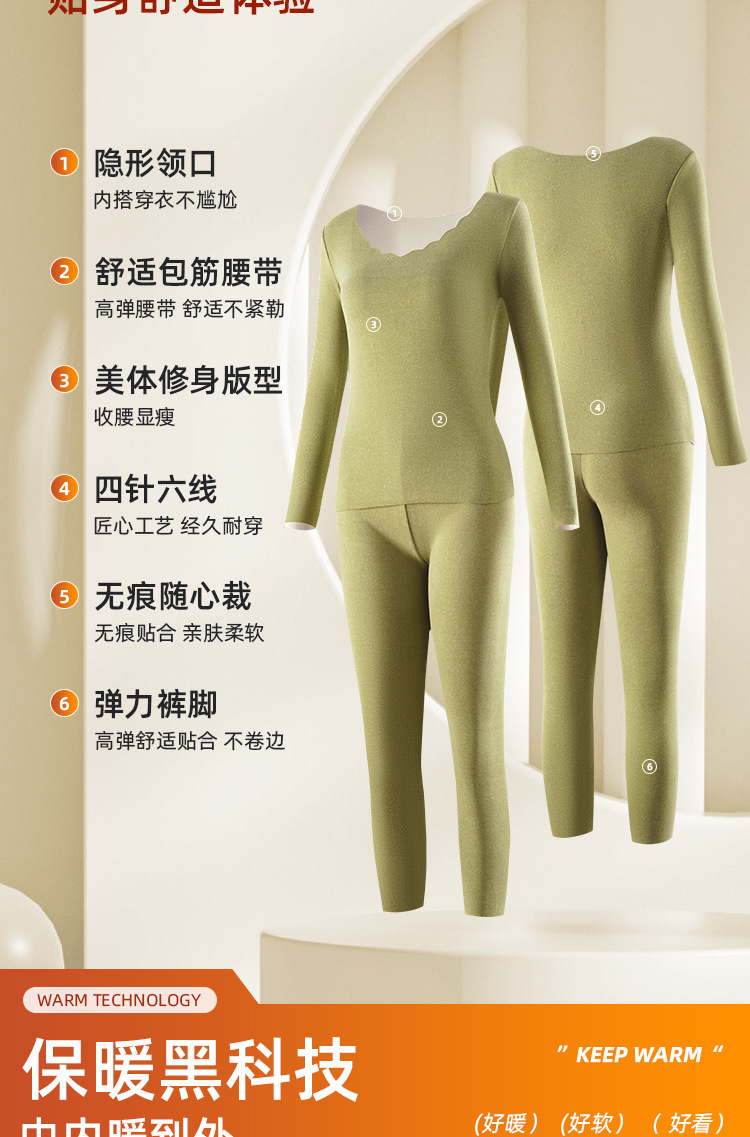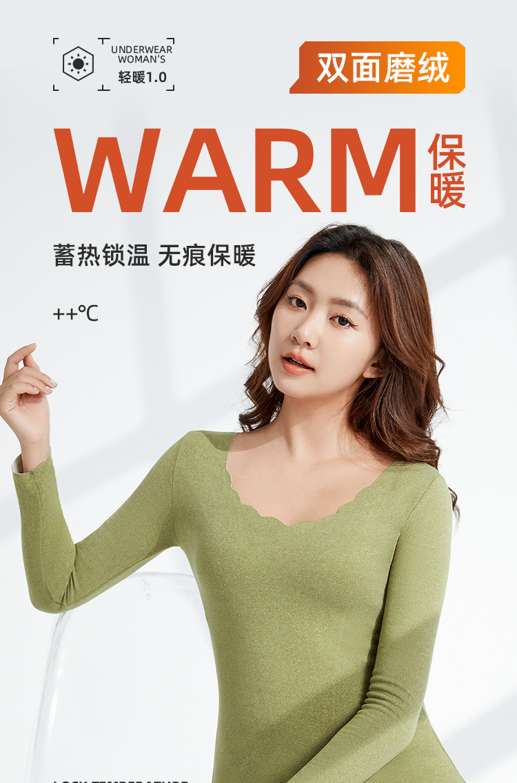 • Autumn and Winter velvet warm clothes fleece-lined thickened AB surface brushed self-heating thermal underwear long sleeve seamless base suit