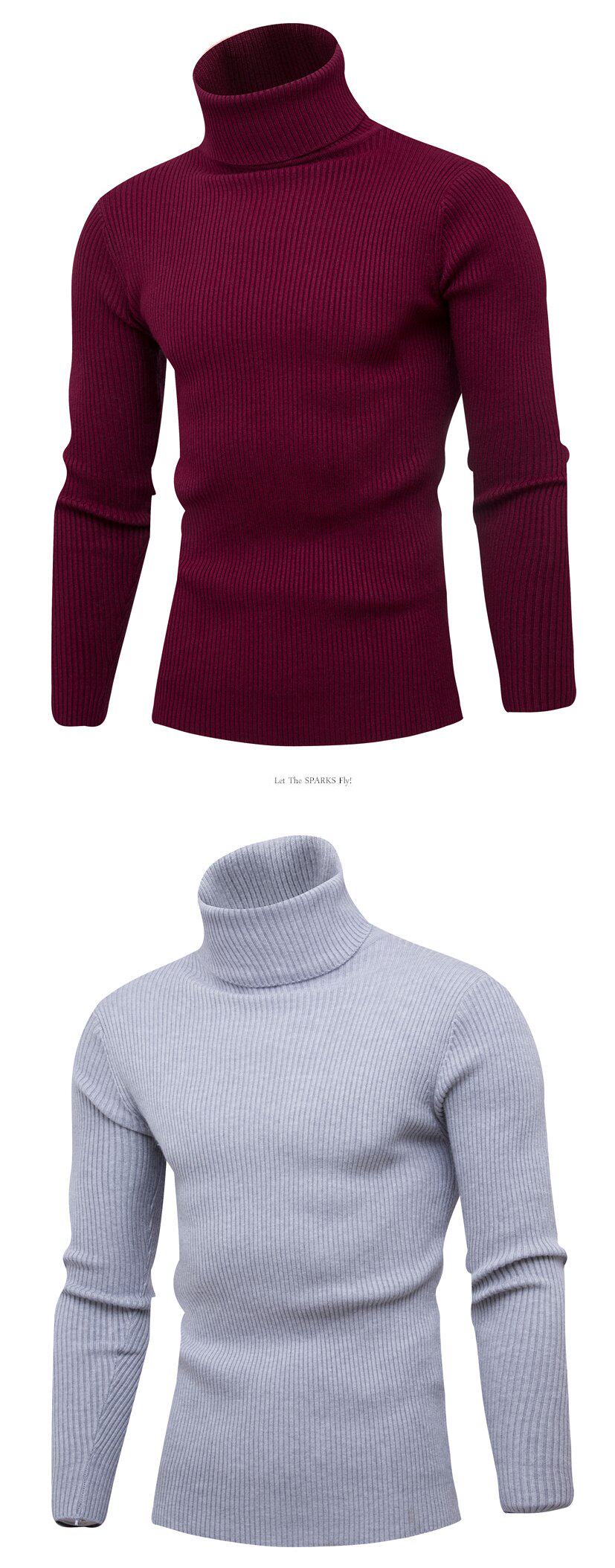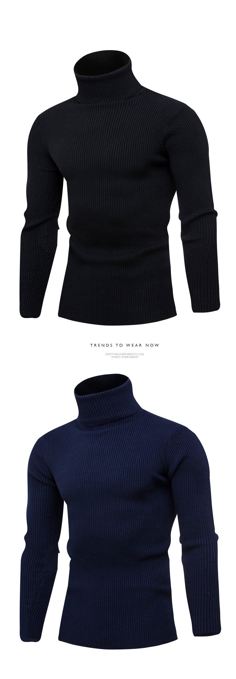 • Autumn and Winter new men's vertical bar turtleneck pullover Korean slim thin sweater student Youth Men's sweater