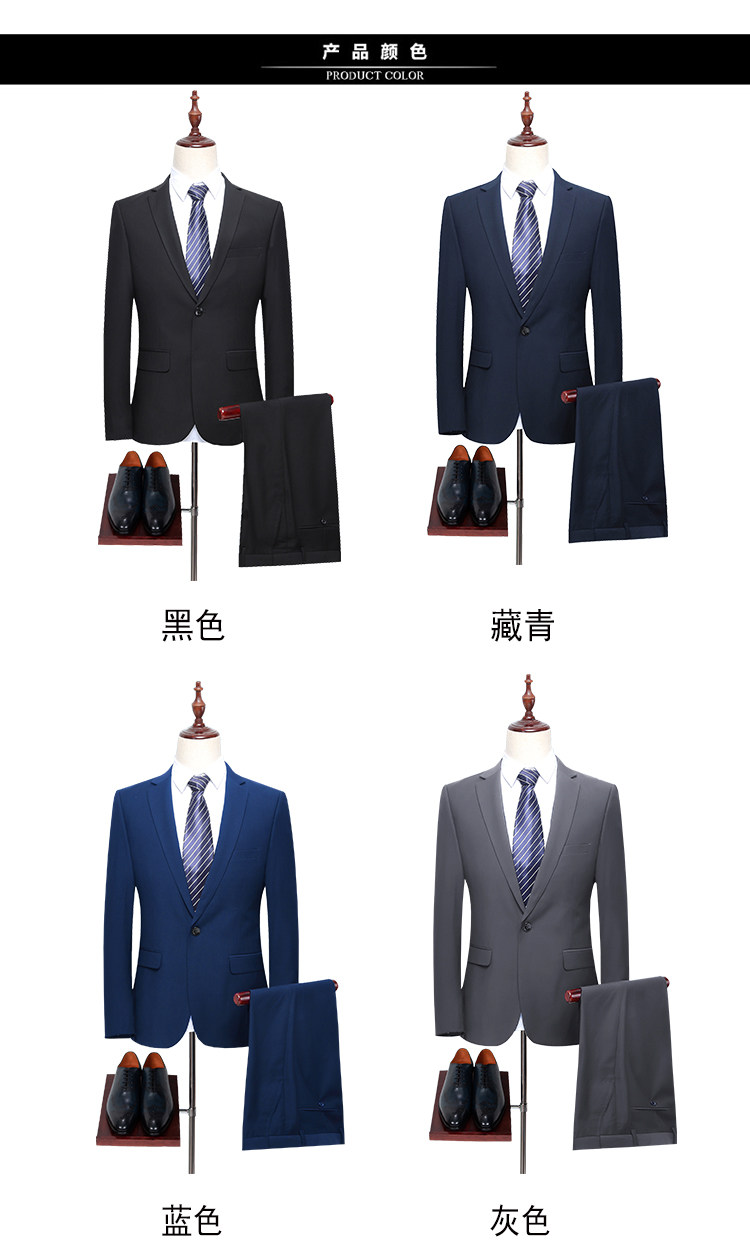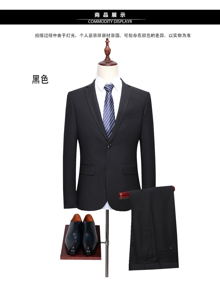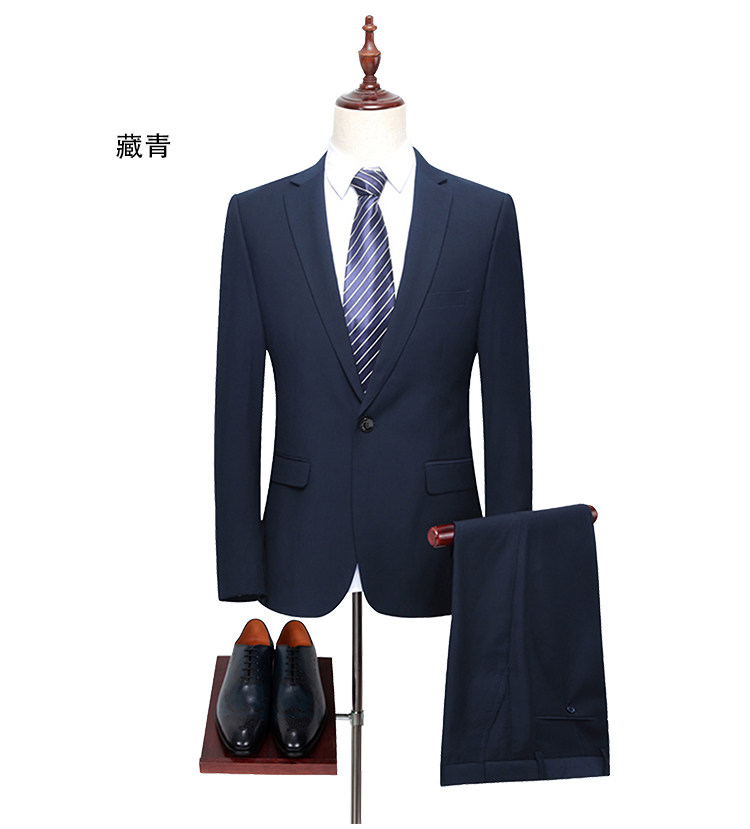 • Autumn New Men's British Slim-Fit One-Button Suit Two-Piece Large Size Men's Pure Color Groom Suit
