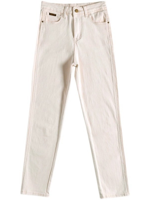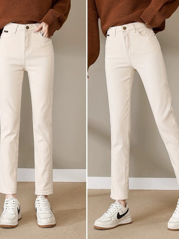 2025 Spring and Autumn New Off-White Jeans Women's High Waist Stretch Cigarette Pants Outerwear Popular Narrow Straight Pants