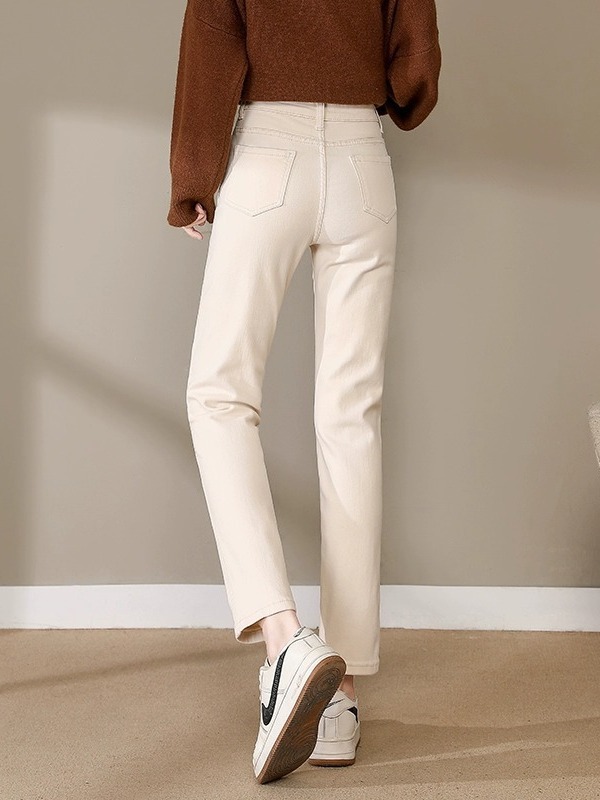• 2025 Spring and Autumn New Off-White Jeans Women's High Waist Stretch Cigarette Pants Outerwear Popular Narrow Straight Pants