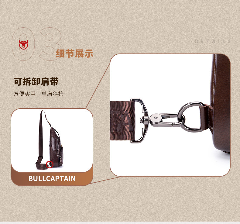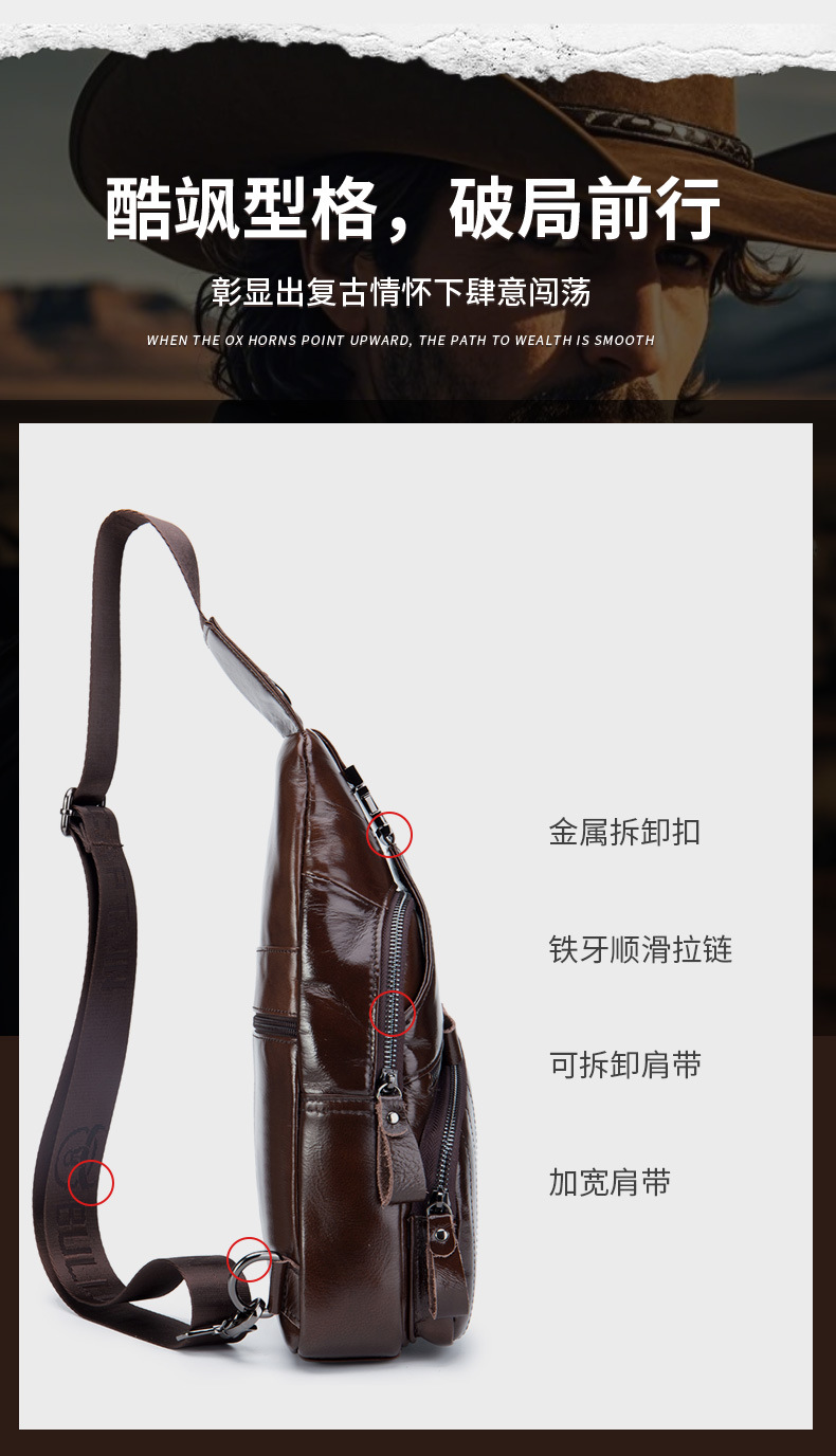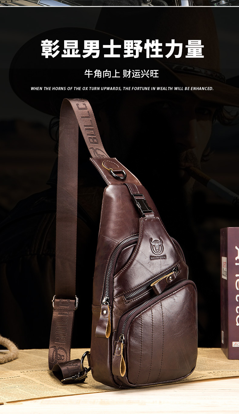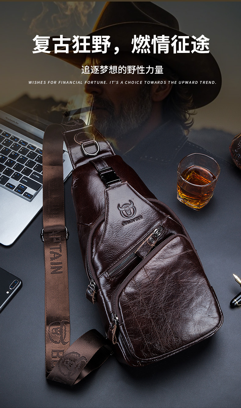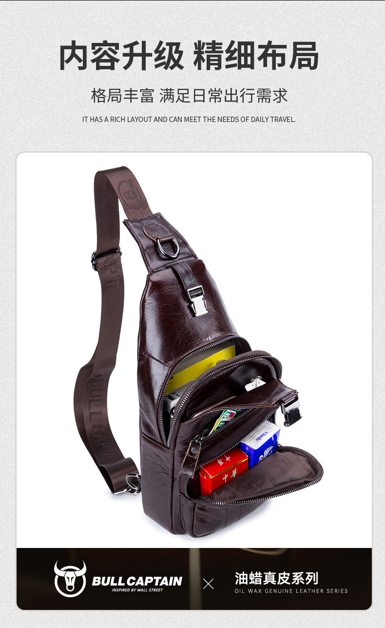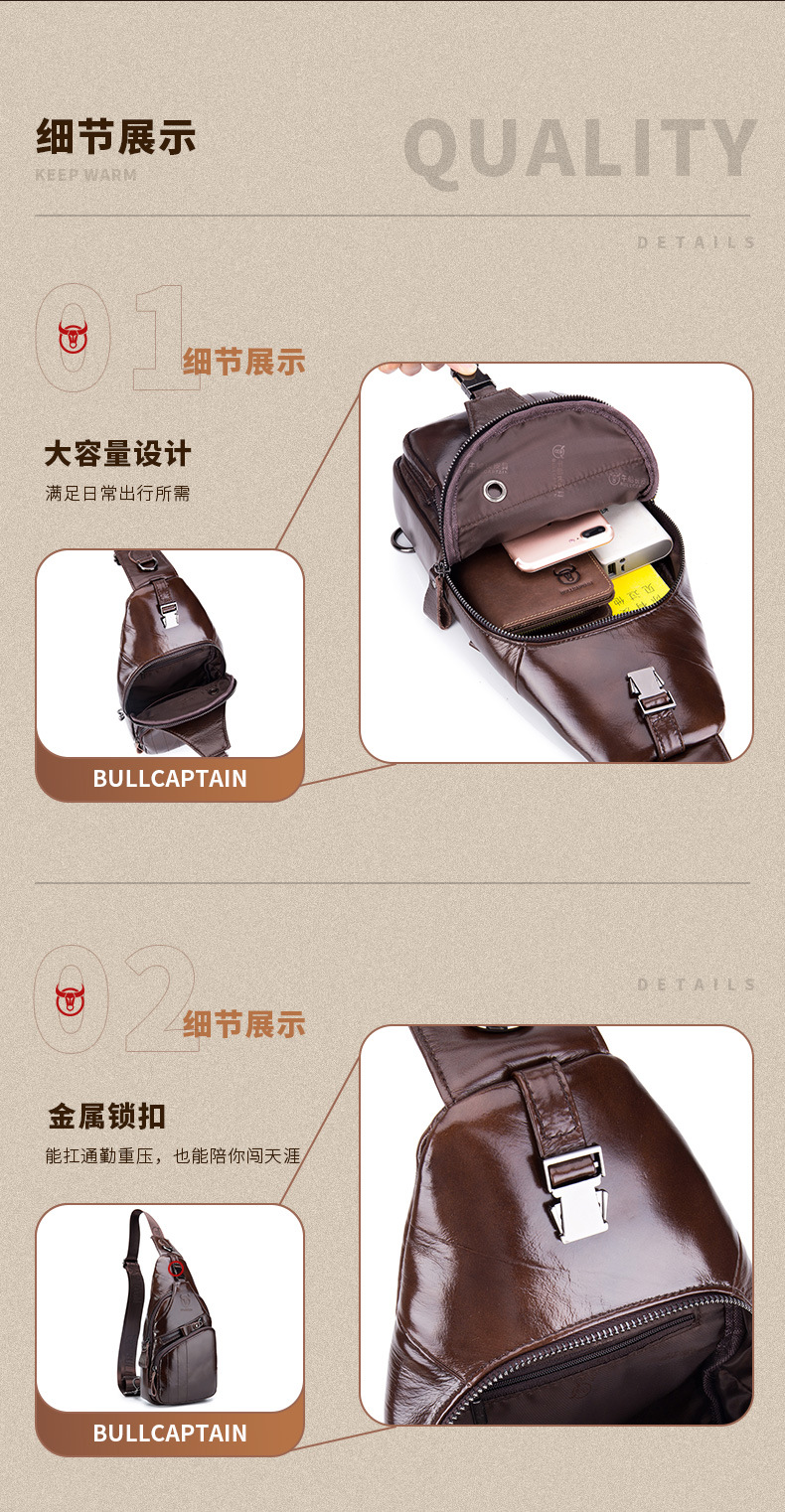 • Captain Niu's High-End Guangzhou Leather Shoulder Crossbody First-Layer Cowhide Men's Chest Bag Genuine Leather Tablet iPad Mobile Phone Bag