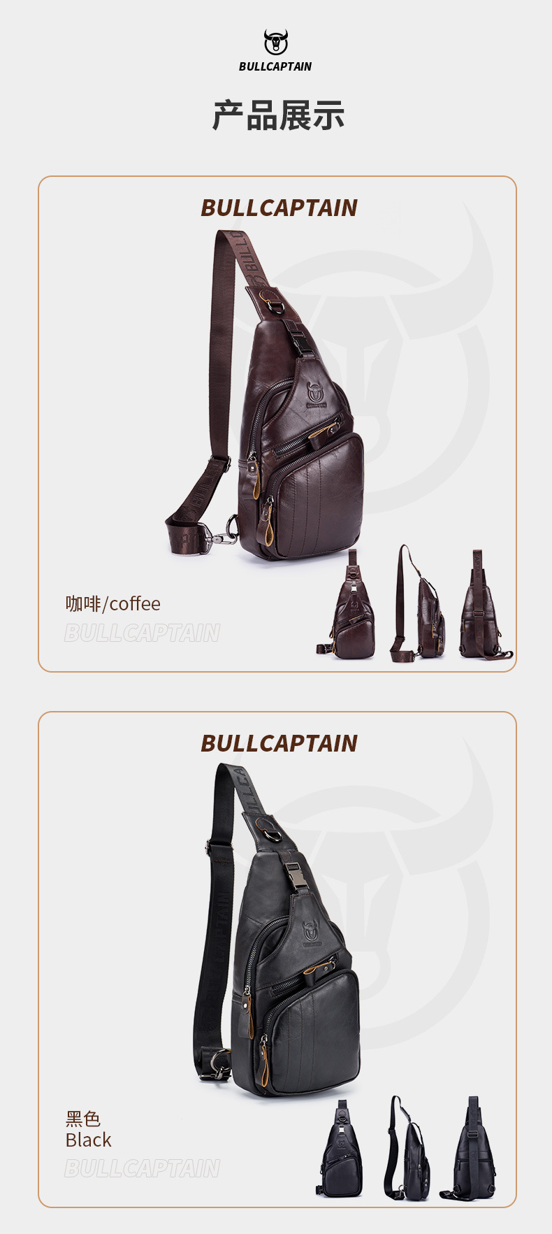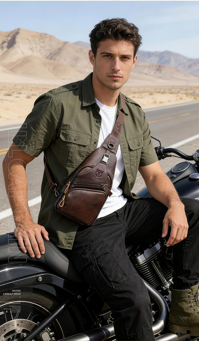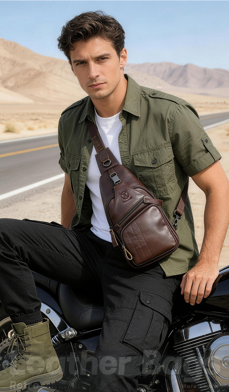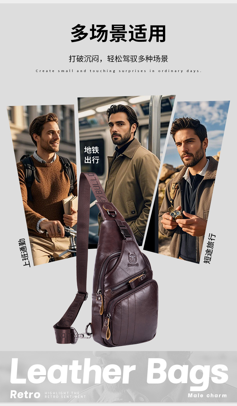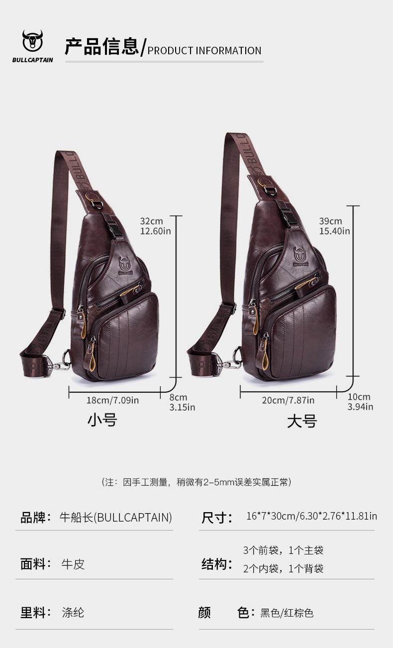 • Captain Niu's High-End Guangzhou Leather Shoulder Crossbody First-Layer Cowhide Men's Chest Bag Genuine Leather Tablet iPad Mobile Phone Bag