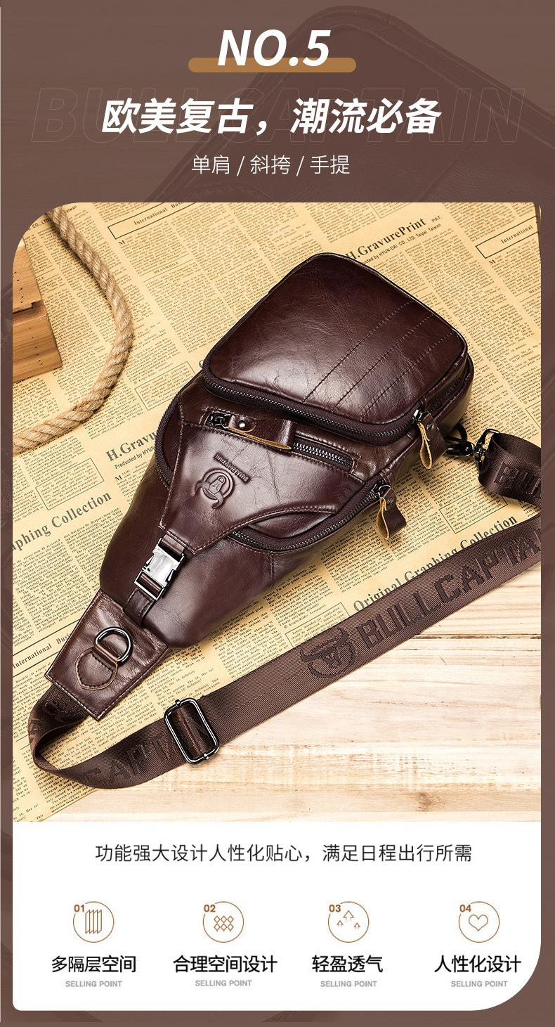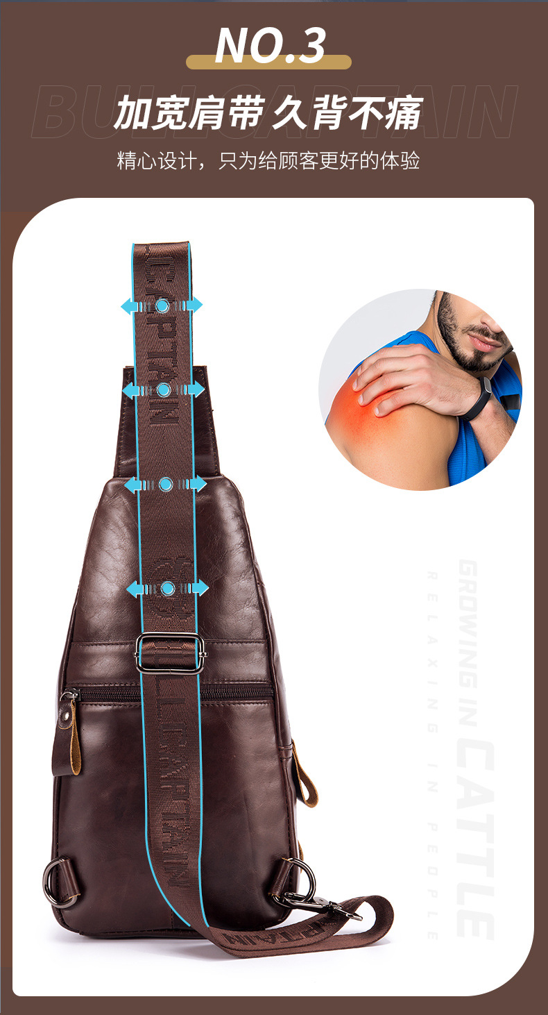 • Captain Niu's High-End Guangzhou Leather Shoulder Crossbody First-Layer Cowhide Men's Chest Bag Genuine Leather Tablet iPad Mobile Phone Bag