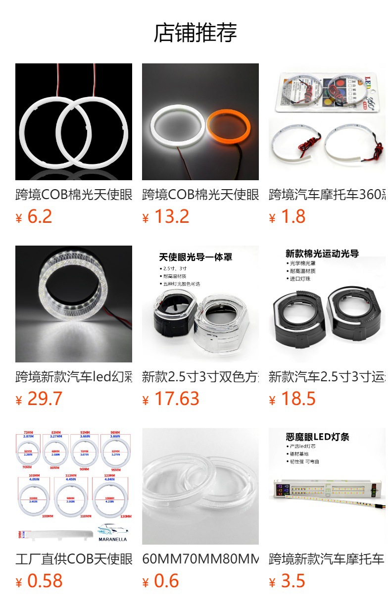 • Cross-Border Cob Angel Eye Aperture Devil's Eye Car Led Headlight Decoration High-Bright Fog Light Daytime Running Light Modification Universal