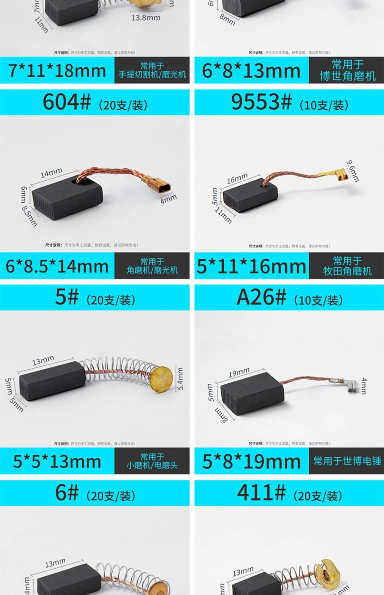 • Carbon brush electric tool spring universal motor angle grinder electric drill hammer cutting machine polishing machine model wholesale