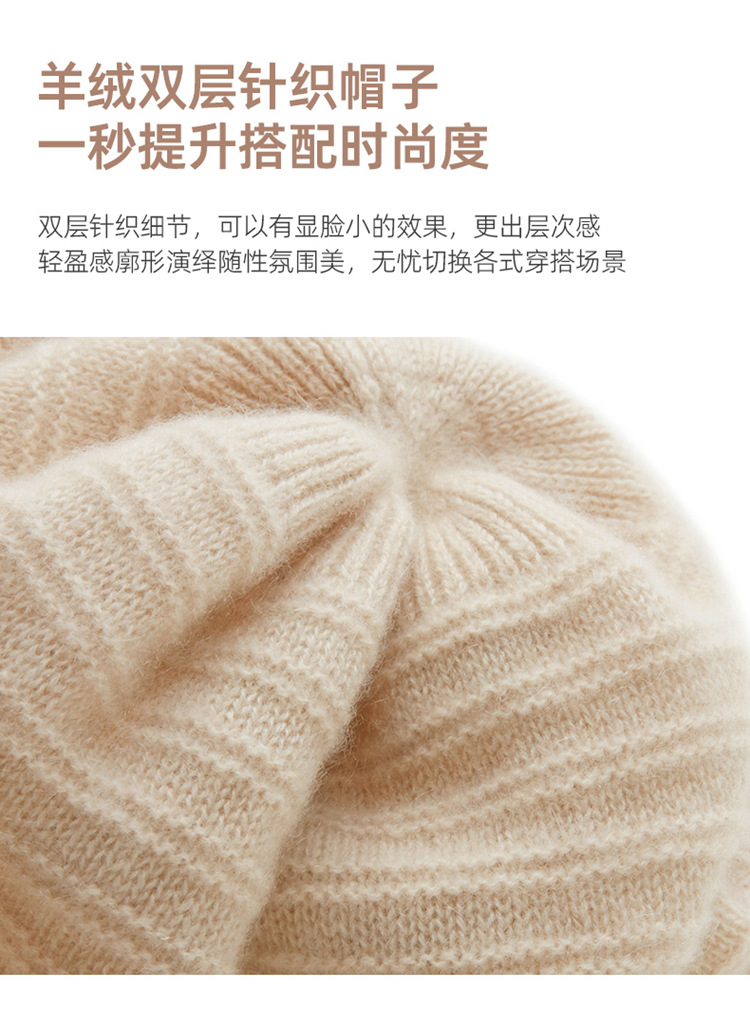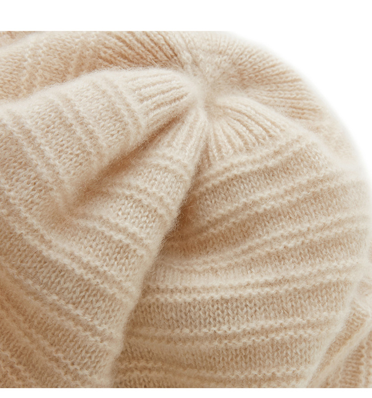 • Cashmere Horizontal Stripesd Fashion Double-Layer Hat for Women Versatile Ear Protection 2025 Autumn and Winter New Cashmere Knitted Hat