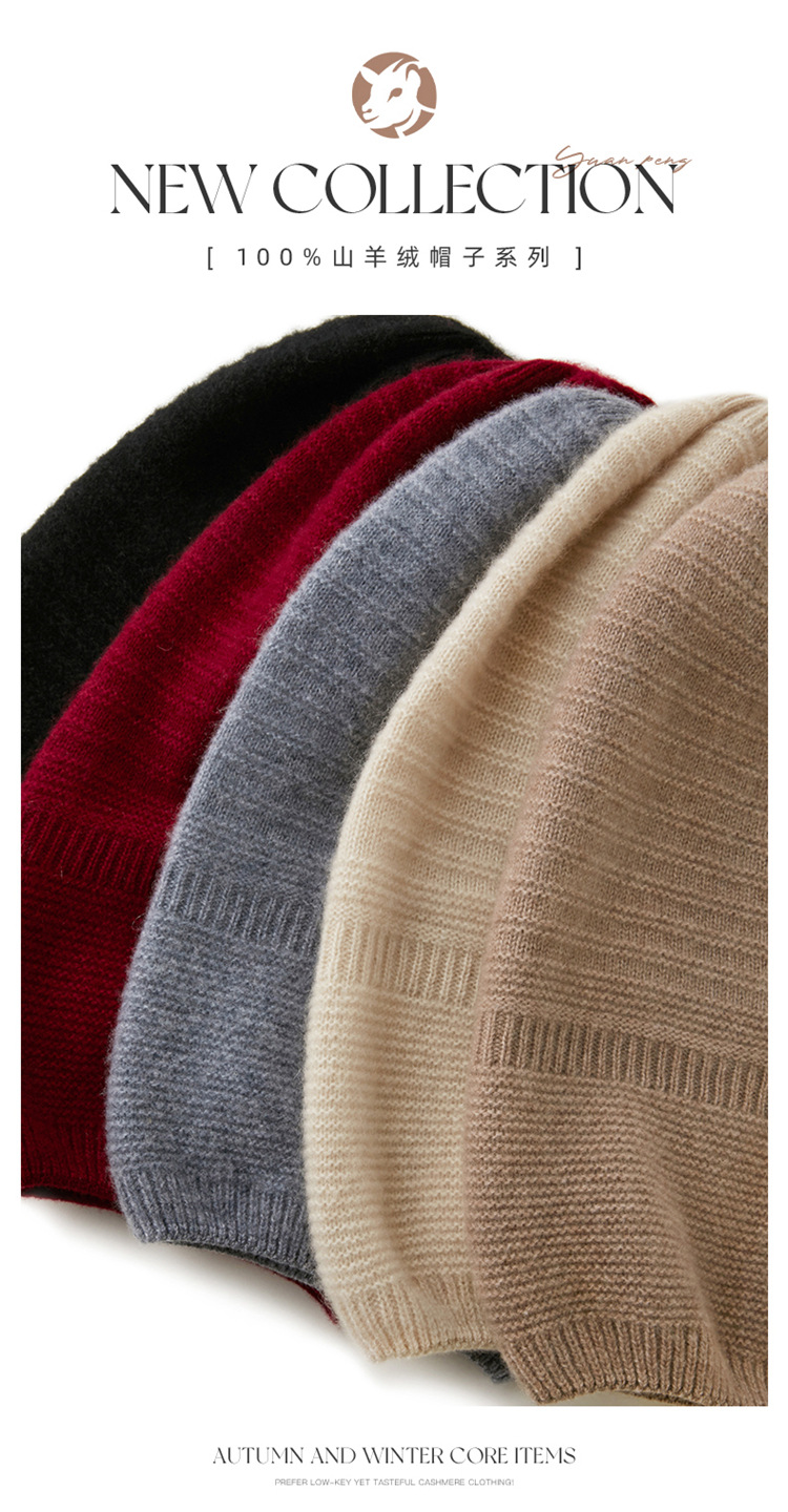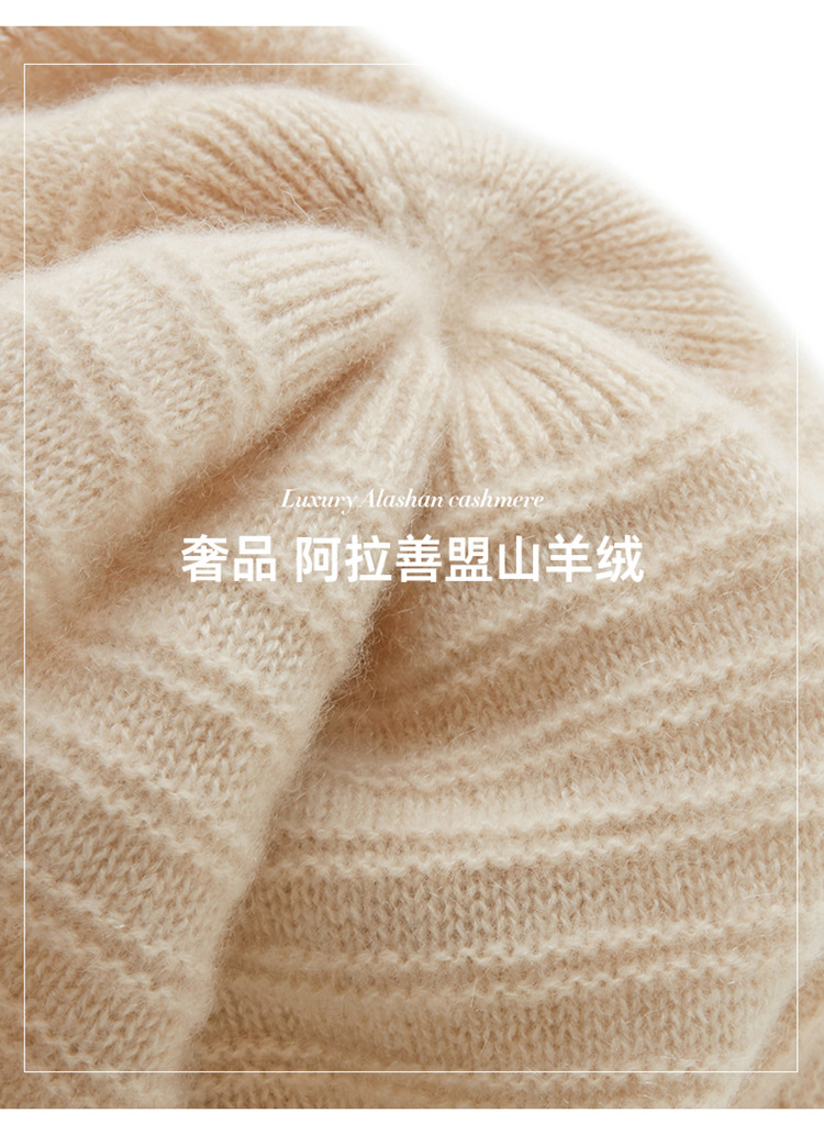 Cashmere Horizontal Stripesd Fashion Double-Layer Hat for Women Versatile Ear Protection 2025 Autumn and Winter New Cashmere Knitted Hat