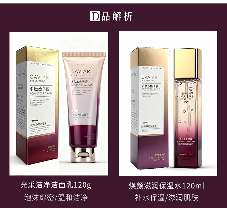 • Polypeptide Caviar Skin Care Product Set, Firming, Anti-Wrinkle, Hydrating, High-End Beauty Salon Genuine Cosmetics Complete Set