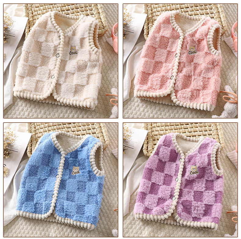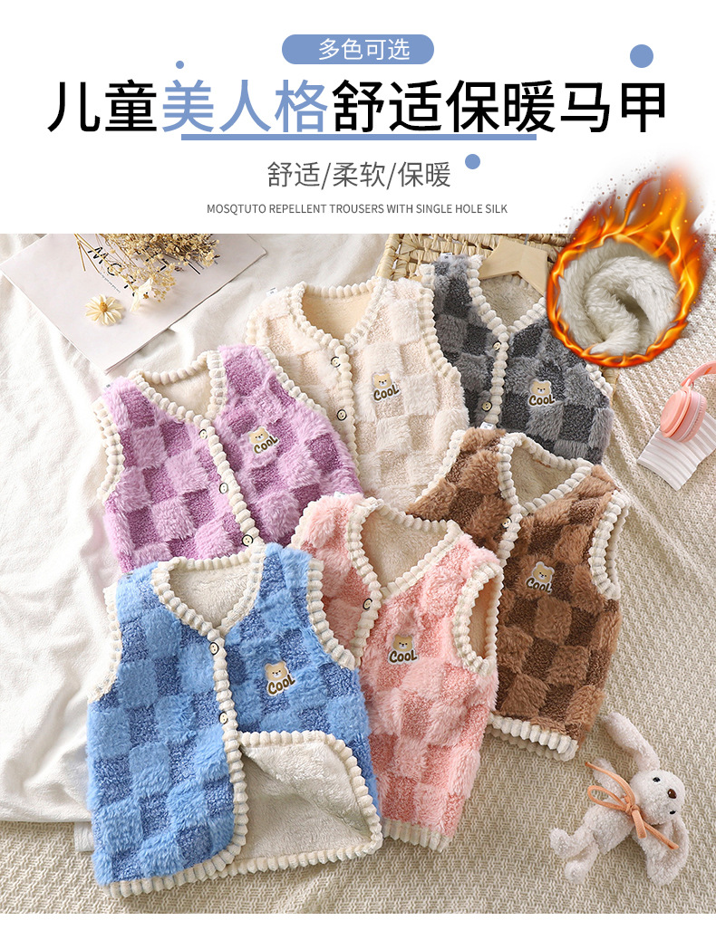Children's fleece-lined vest boys and girls western style vest baby double-sided velvet waistcoat outer wear baby thickened warm vest