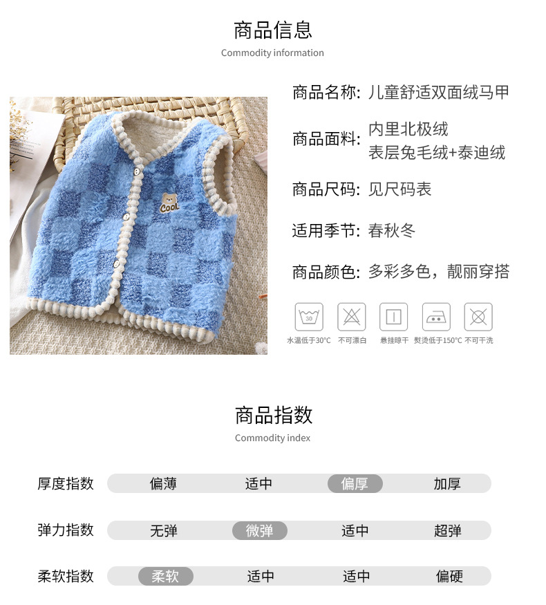 • Children's fleece-lined vest boys and girls western style vest baby double-sided velvet waistcoat outer wear baby thickened warm vest