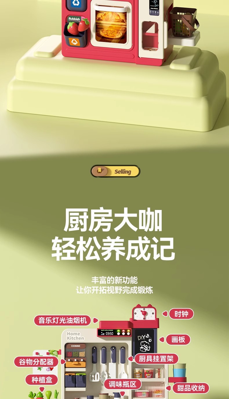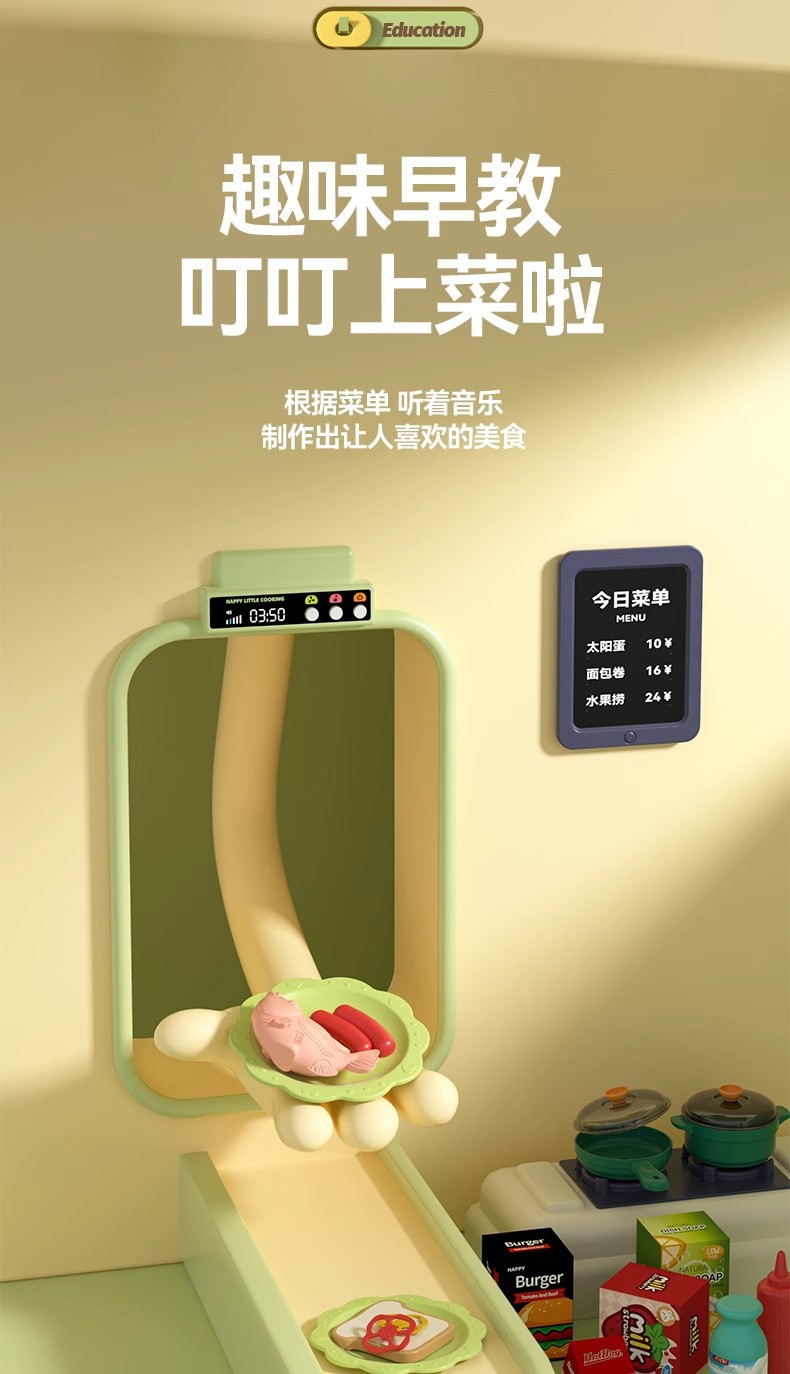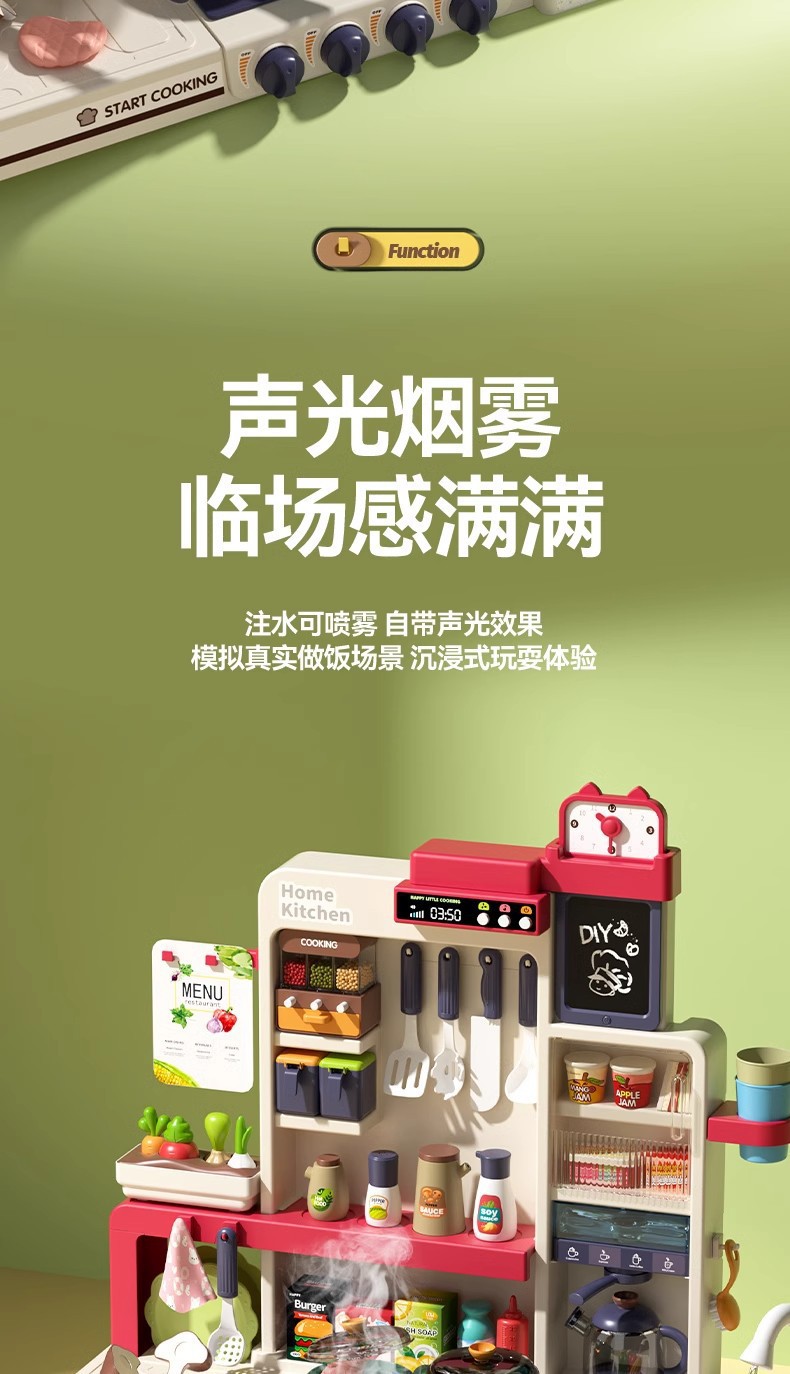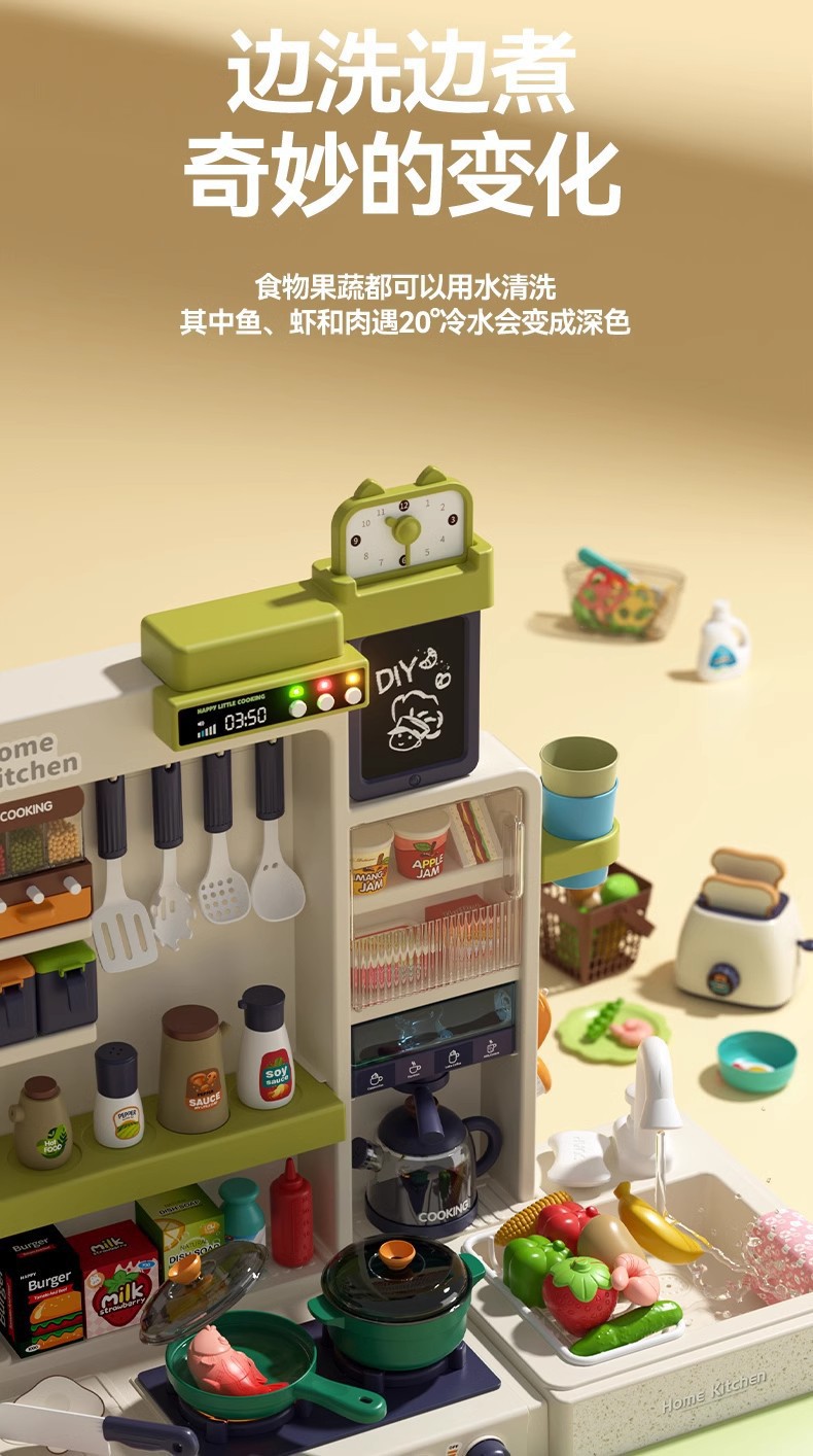 • Children's Extra Large Play Kitchen Toys for Girls 3-6 Years Old Washing Vegetables and Cooking suit Sound and Light Spray Birthday Ceremony