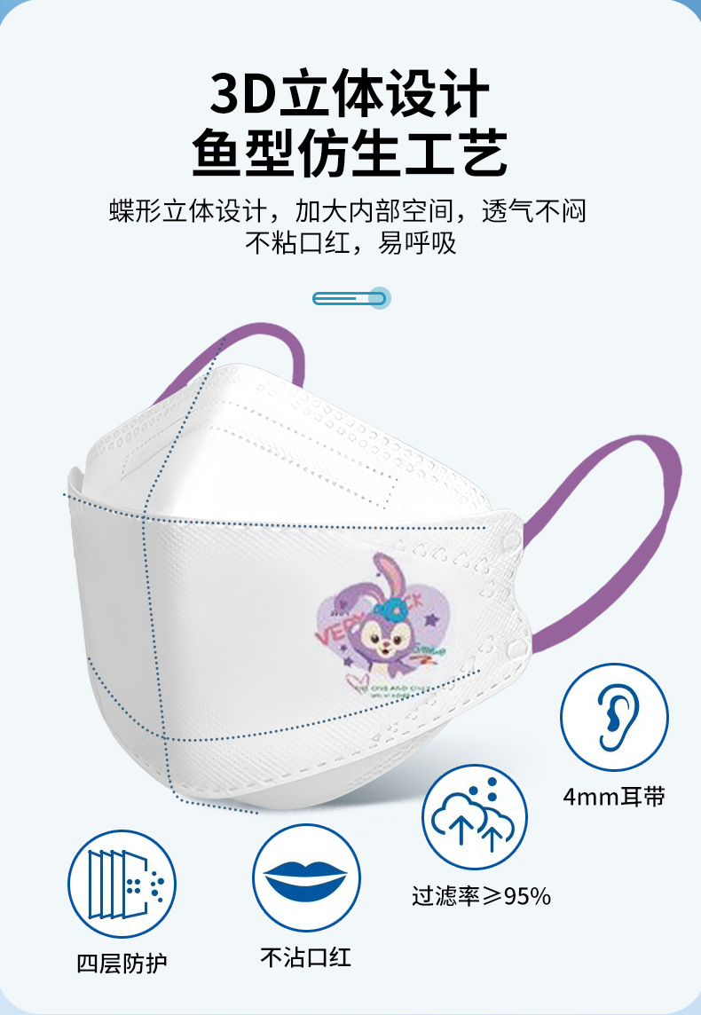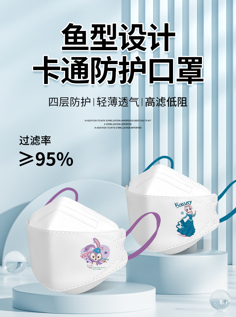 • Fish-Shaped Kn95 Kidsren's Mask Disposable 3D Stereo Ear-Hanging Cute Cartoon Independent Packaging Dust Mask
