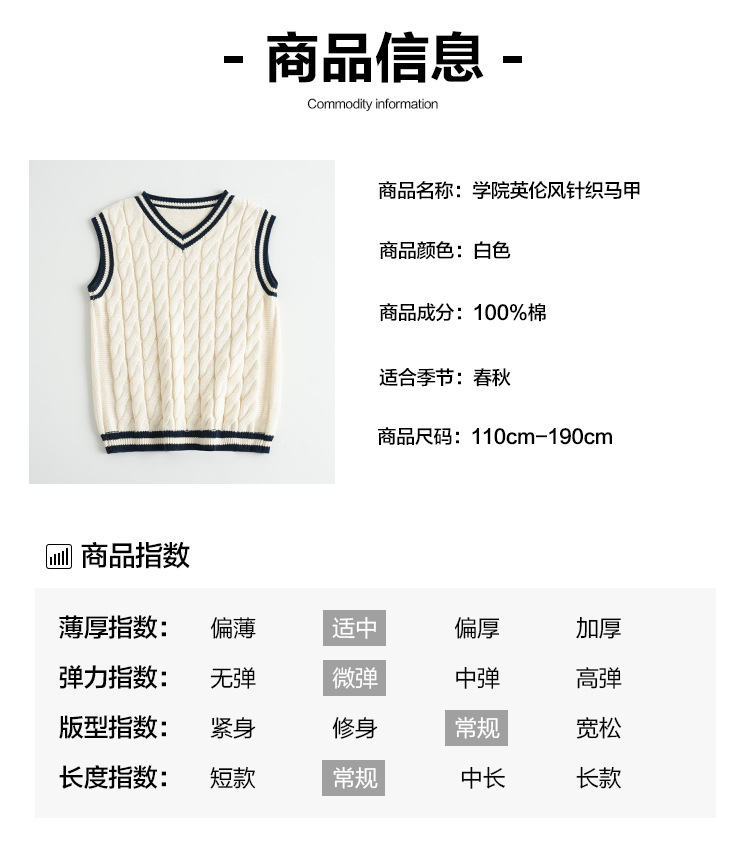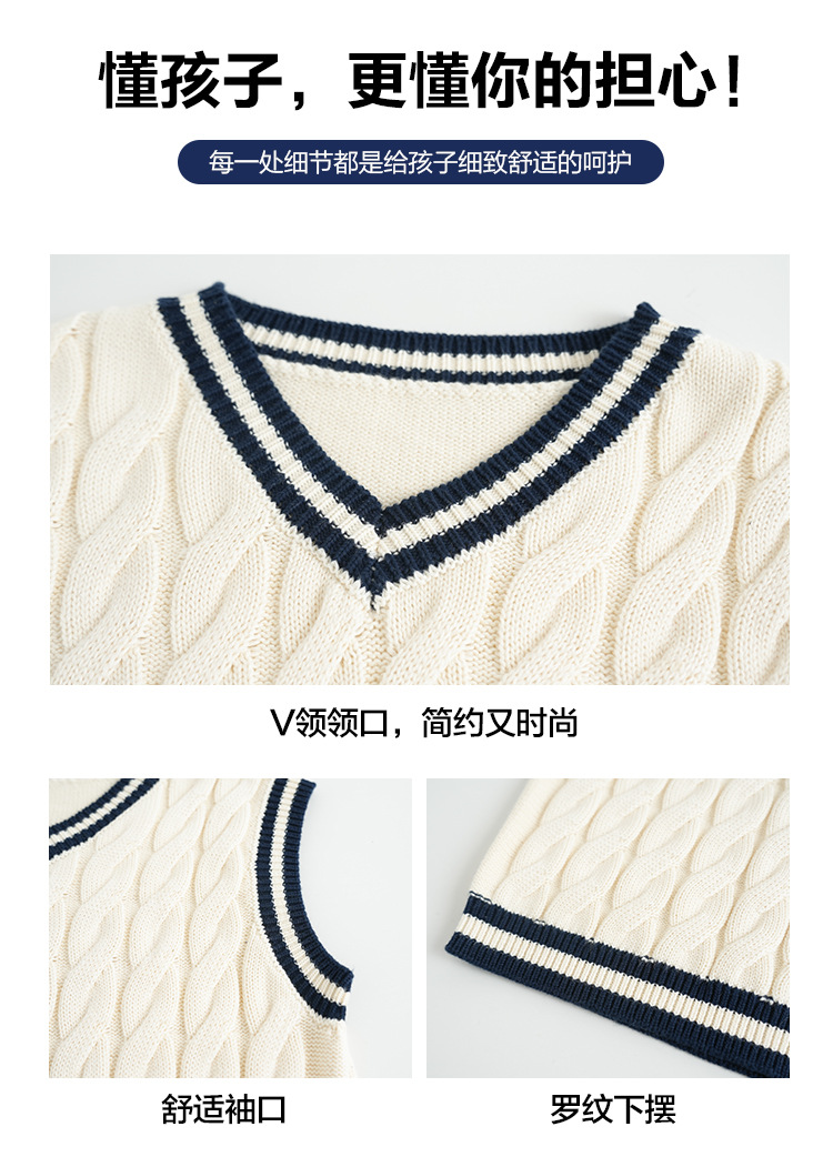 • Children's Vest Boys' Sweater Student's School Uniform British Girls' Cotton Thread Baby's Knitted Vest Uniform