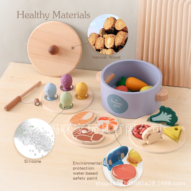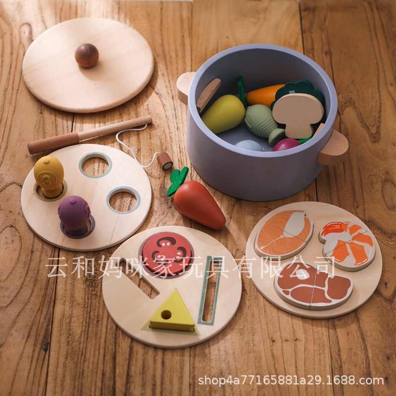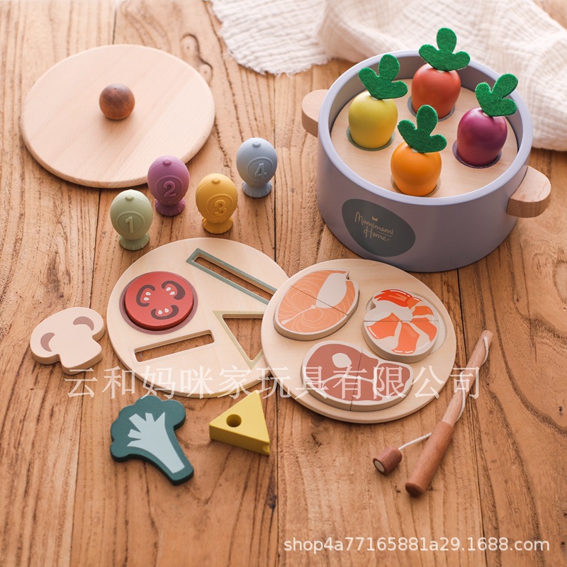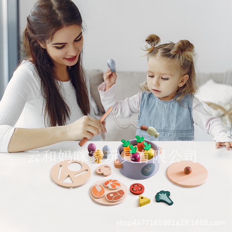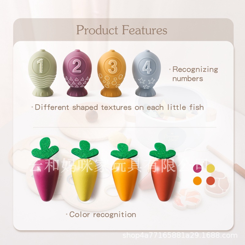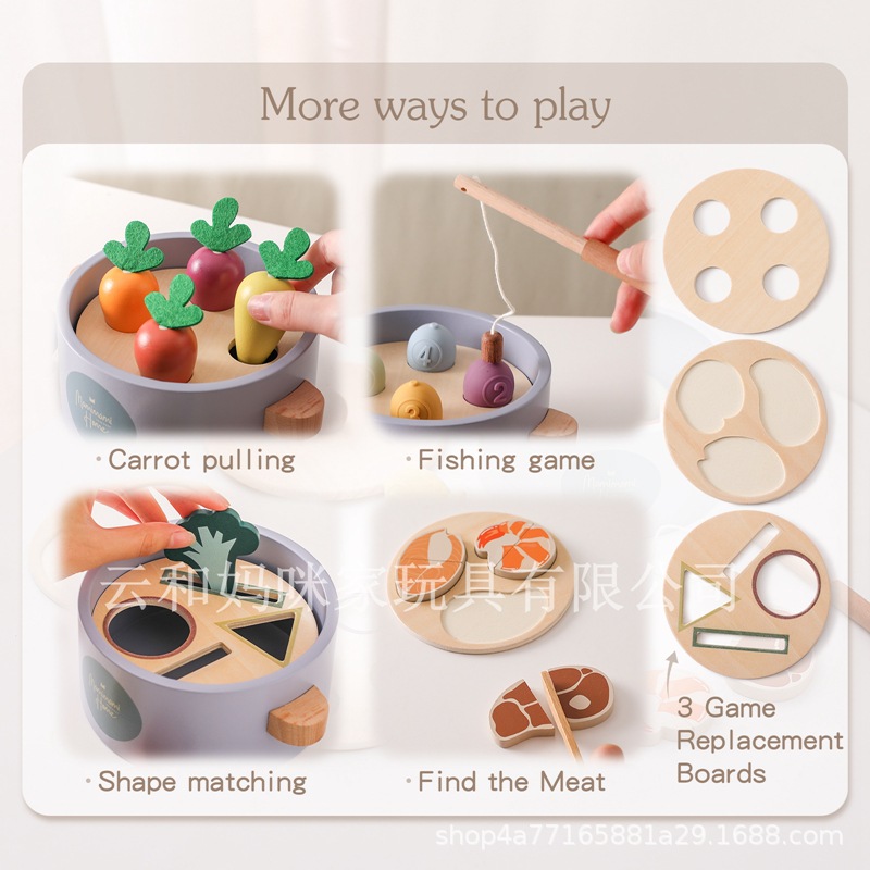 • Children's Wooden Pretend Play Toy Carrot Pulling Fishing Tabletop Game Shape Matching Interactive Toy