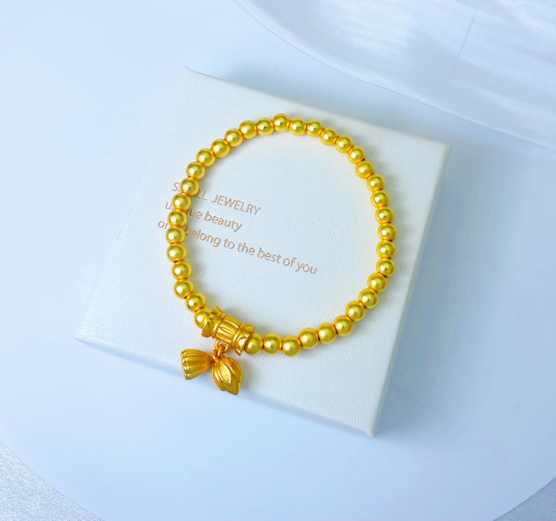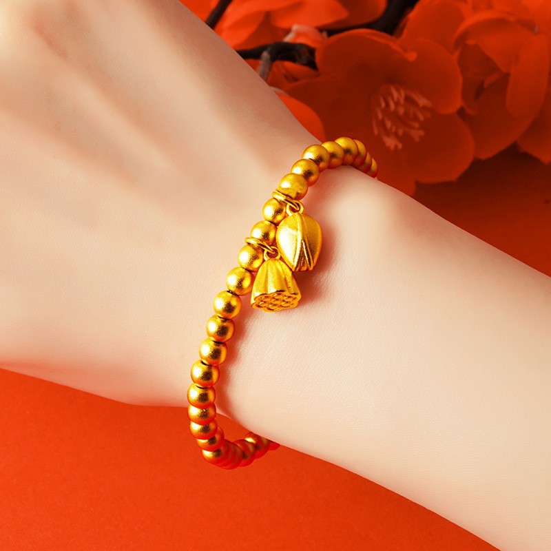 Thick gold 5n gold flower bag lotus elastic lotus pod two-year bracelet