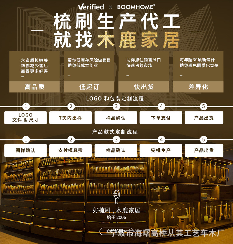 14.品牌标语:梳刷生产代工,就找木鹿家居。