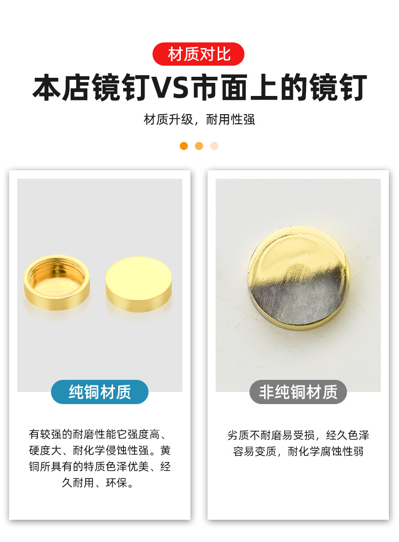 • Copper Thickened Mirror Nail Advertising Nail Screw Decorative Cap Glass Mirror Decorative Cover Glass Fixed Screw Cover